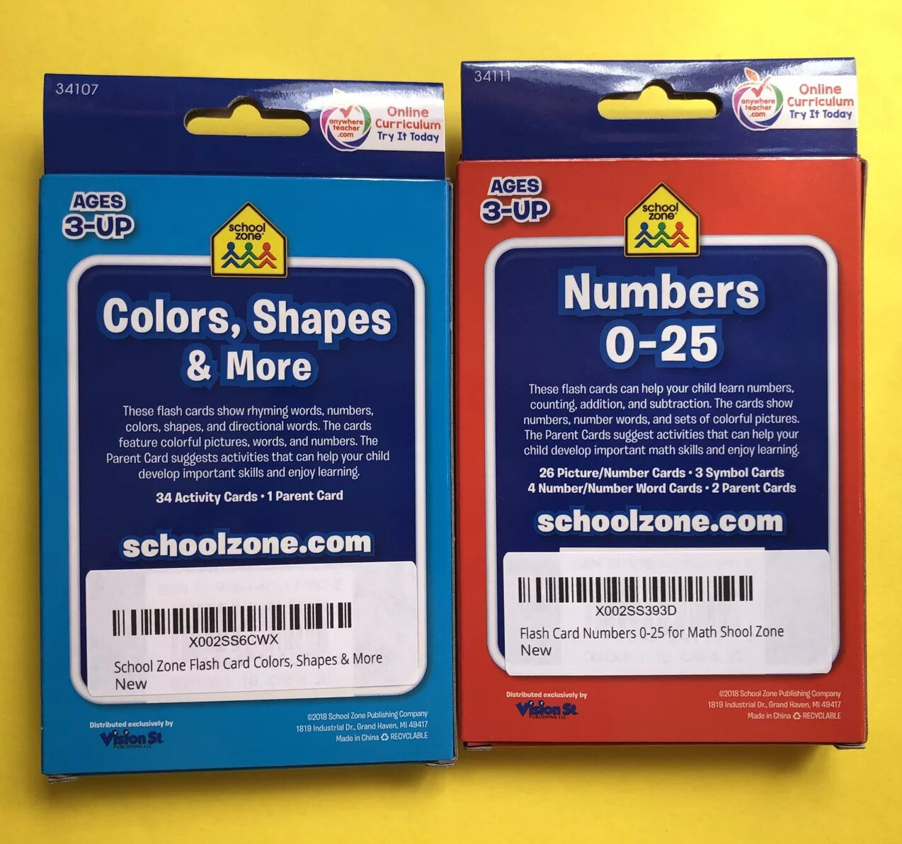 NEW School Zone- COLOR, SHAPES MORE and NUMBERS 0-25 Flash Cards lot of 2