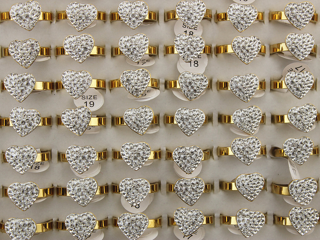 как выглядит Bulk Lots 35pcs Filled Clear Rhinestone Heart Style Stainless Steel Fashion Ring фото