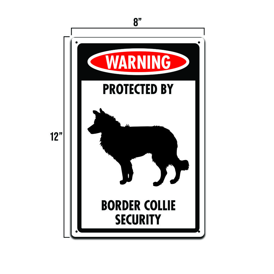 Warning Protected By Border Collie Security Dog Sign for Front Door 12x 8