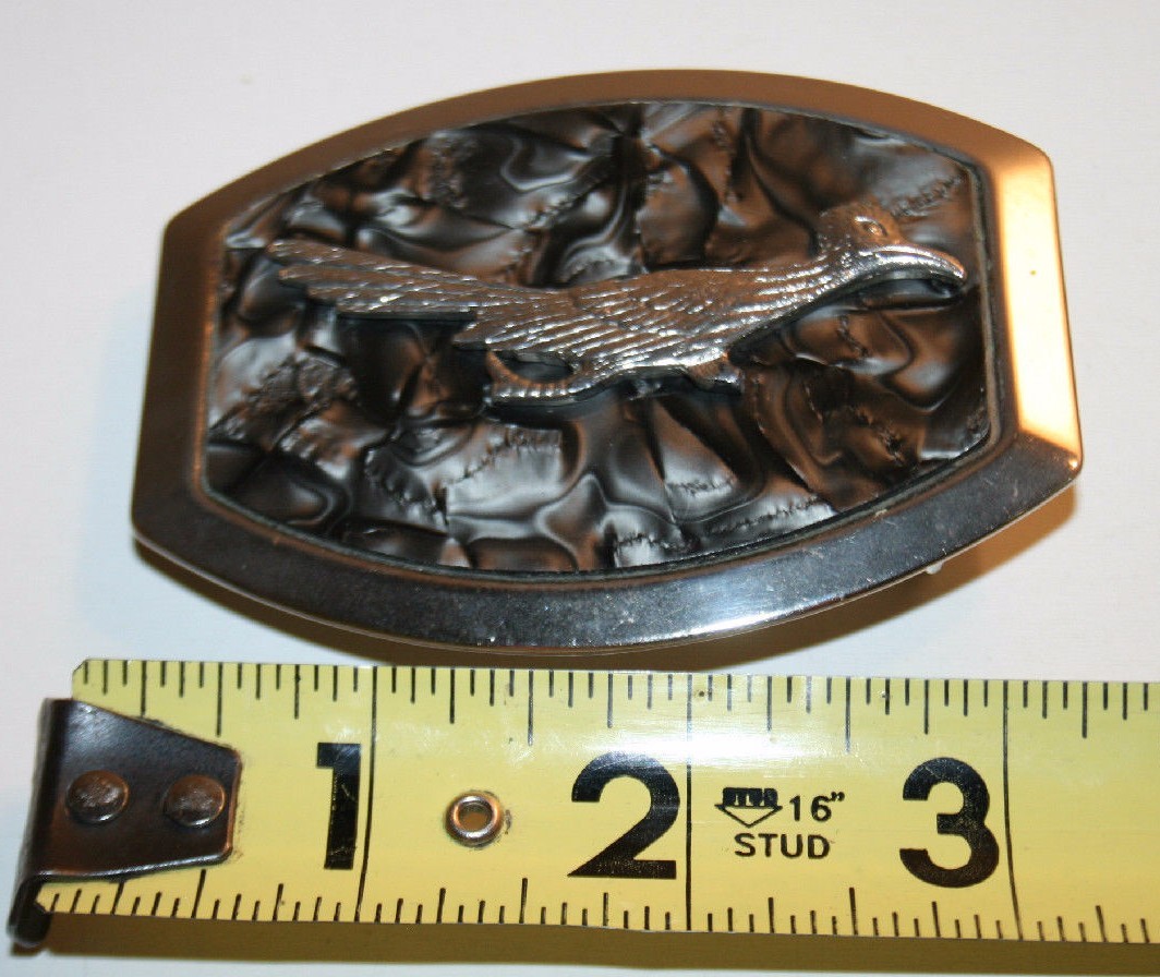 как выглядит Vintage Roadrunner Metal Marbled Styled Belt Buckle Unique Art Bird Rare фото