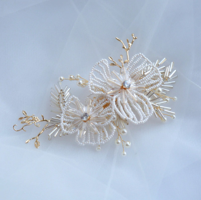 как выглядит Elegant Handmade Flower Crystal Pearls Bridal Hair Clip Wedding Hair Ornament фото
