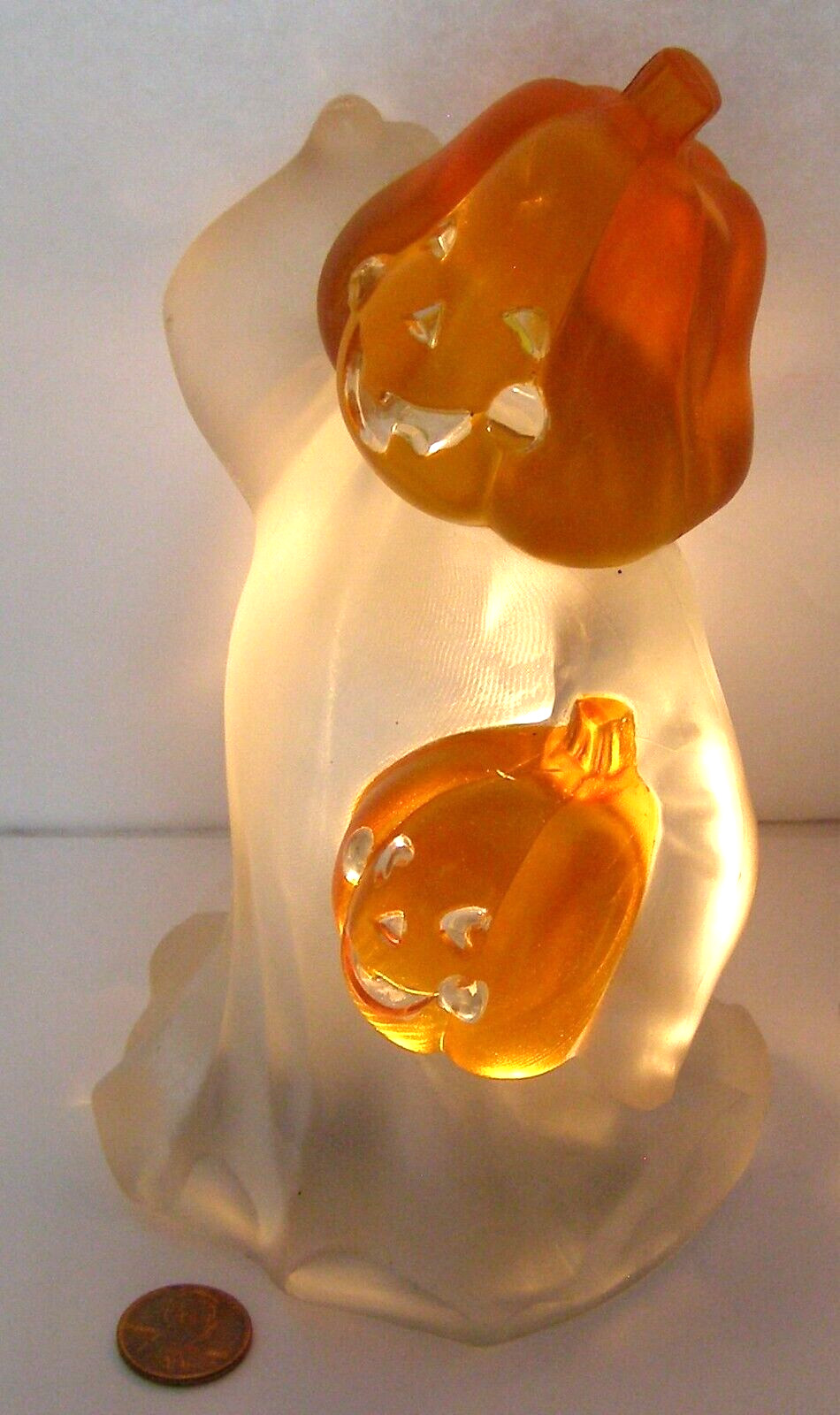 Unknown Brand White Plastic Light-Up Ghost with Pumpkin Head