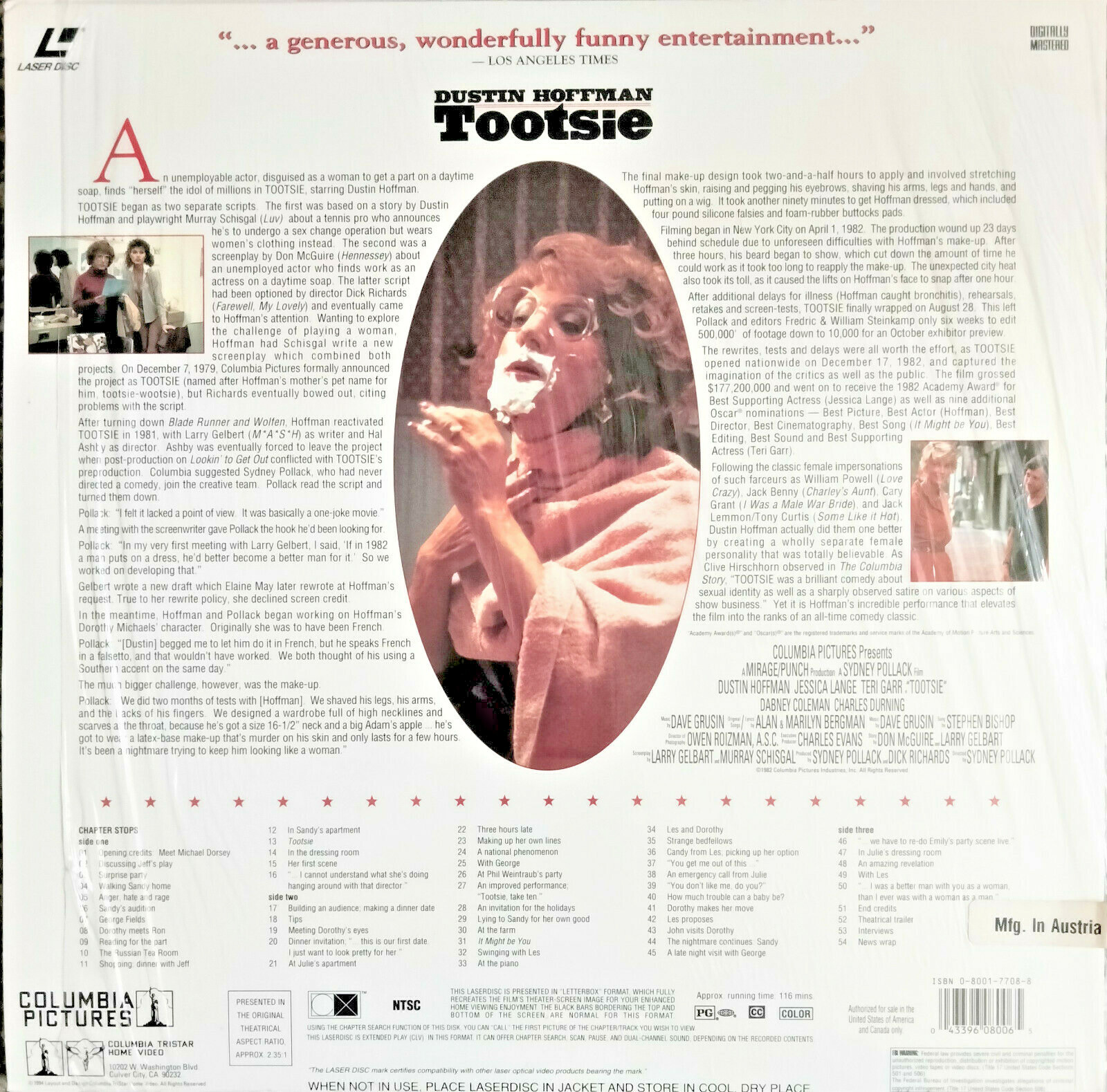 TOOTSIE Laserdisc - Dustin Hoffman, Jessica Lange: 1982 Oscar winner, like new