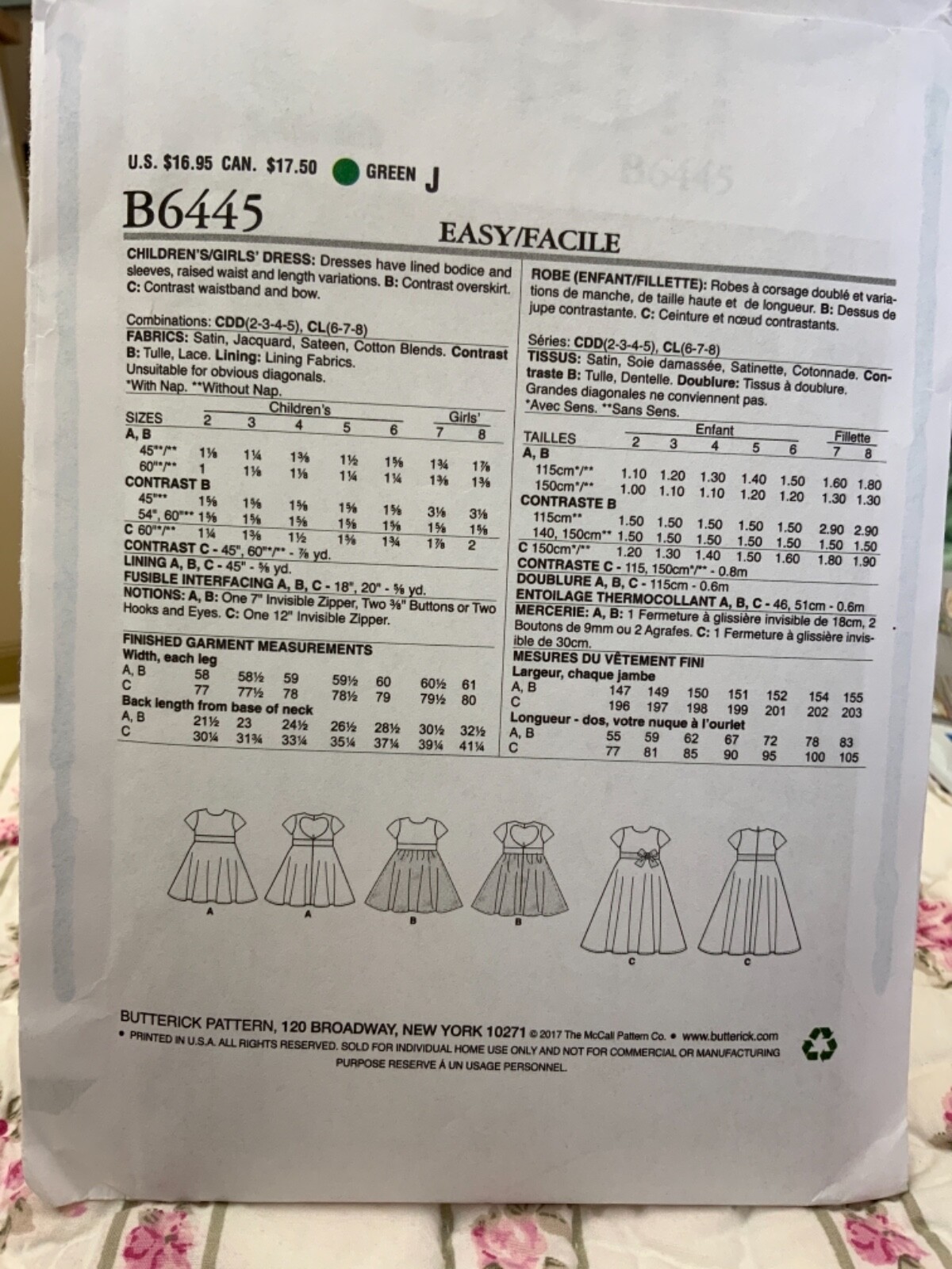 как выглядит Butterick Pattern B6445 Girls Party Pageant Flower Girl DRESS Sz 6 7 8 UC фото