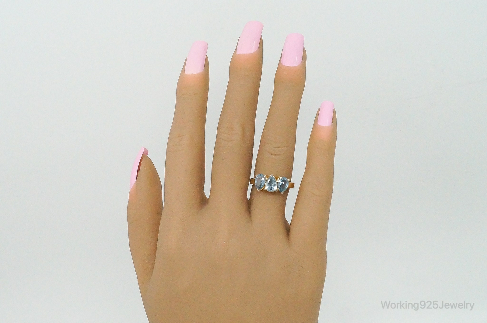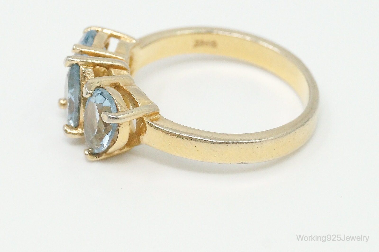 как выглядит Vintage Blue Topaz Gold Vermeil Sterling Silver Ring Size 7 фото