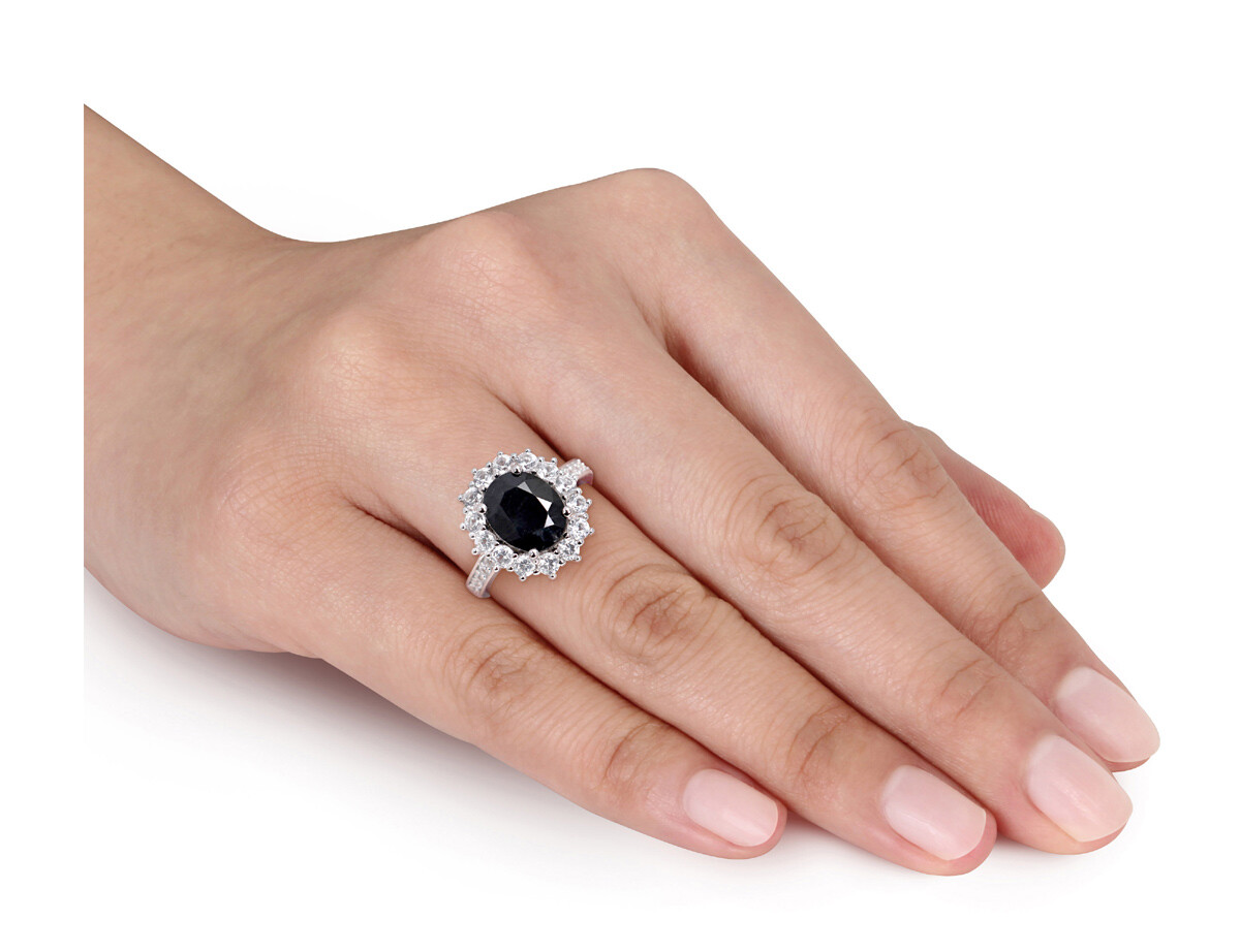 как выглядит 5.00 Carat ctw Black Sapphire and Lab-Created White Sapphire Ring in Sterling фото