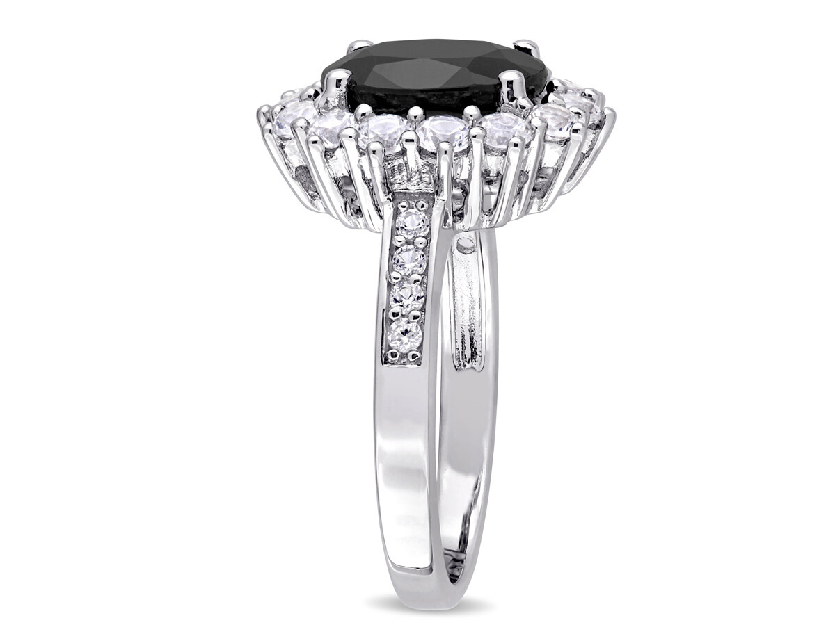 5.00 Carat ctw Black Sapphire and Lab-Created White Sapphire Ring in Sterling