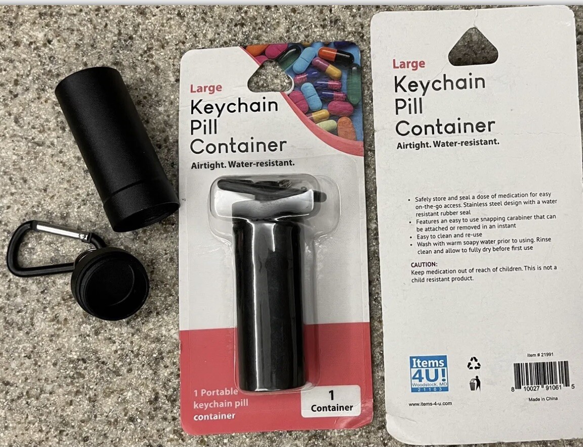 2 Heavy Duty Stainless Steel Black Pill Fob Key Chain Medication TravelContainer