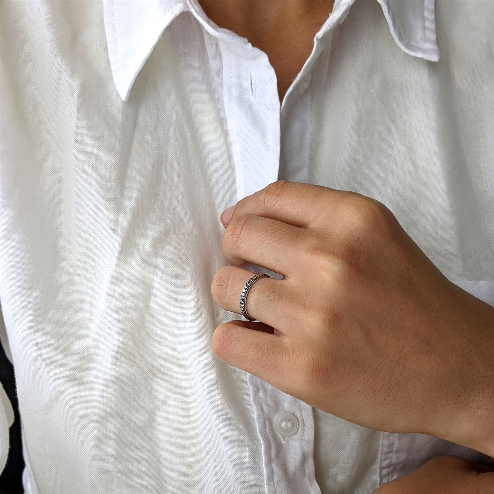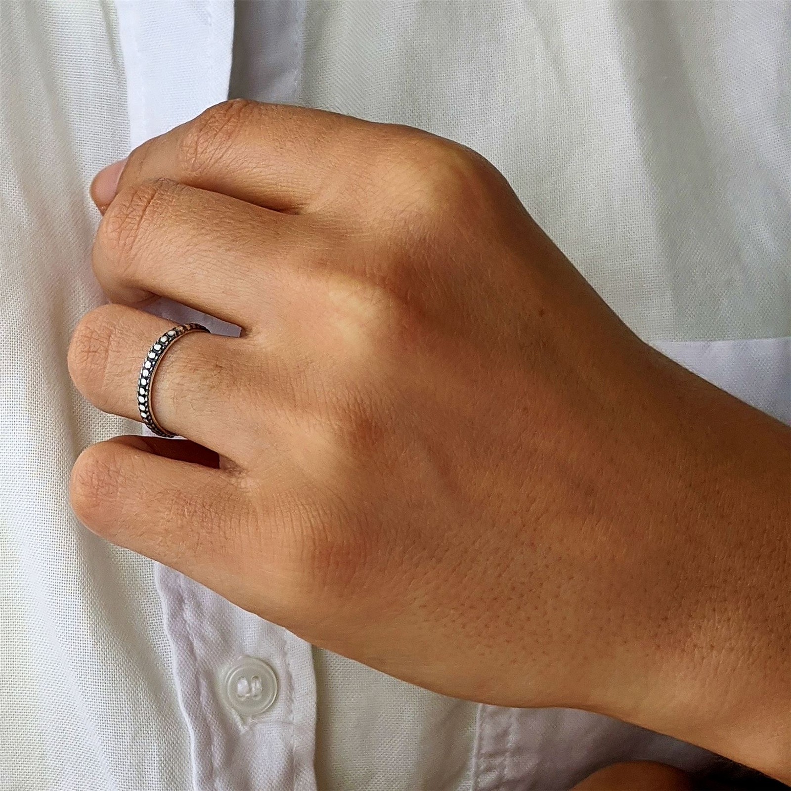 Silverly Sterling Silver Ring 925 Boho Dot Bead Studded Thin Stackable Band