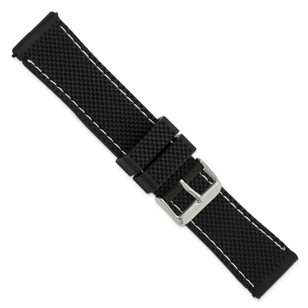 22mm Black Silicone White Stitch Silver-tone Buckle Watch Band