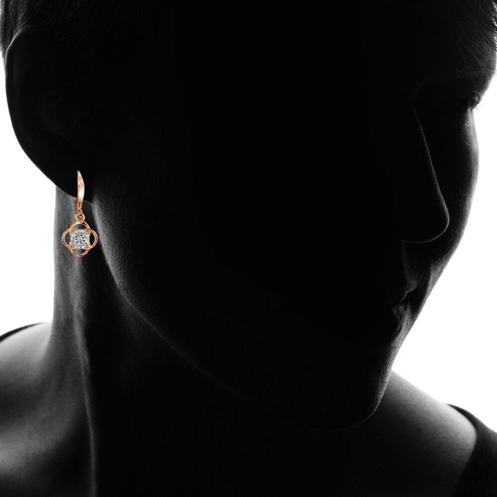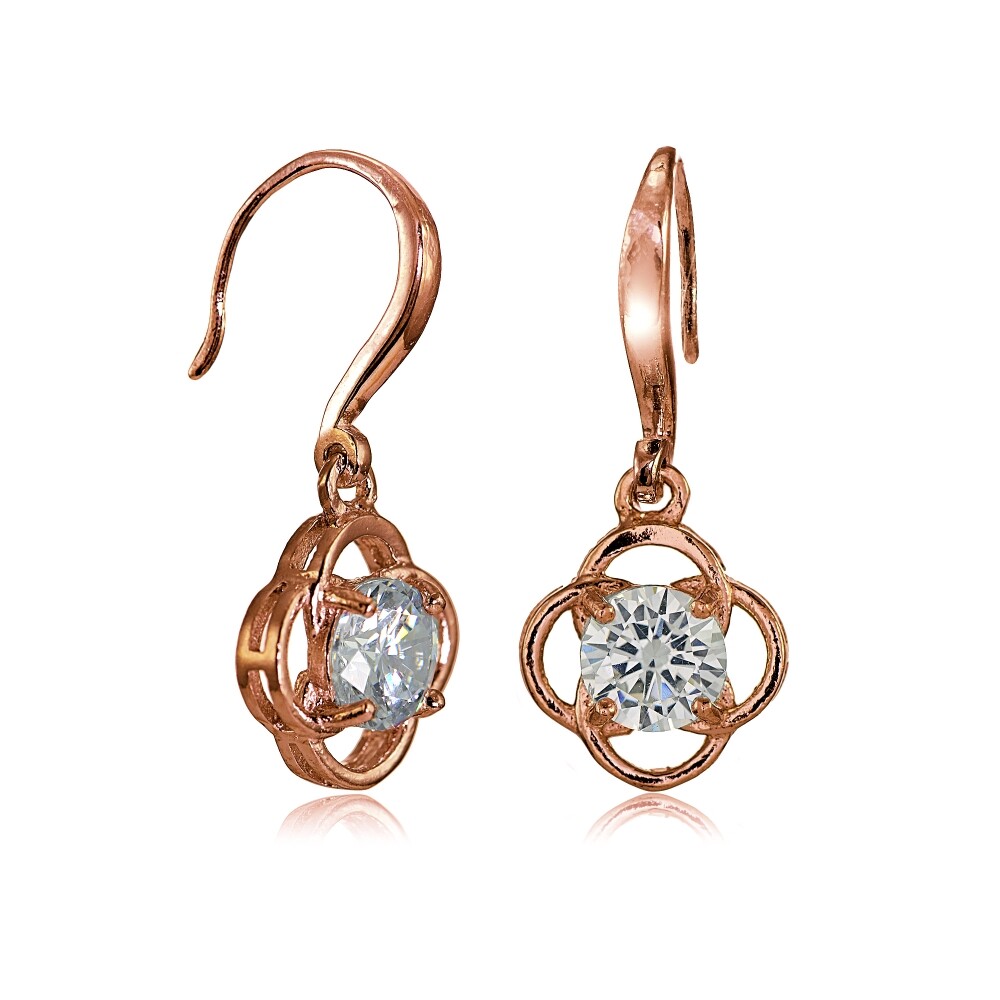 как выглядит Rose Gold Flashed Sterling Silver Cubic Zirconia Flower Knot Dangle Earrings фото