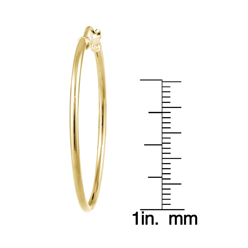 Gold Tone over Sterling Silver 1.5mm High Polished Round Hoop Earrings, 35mm