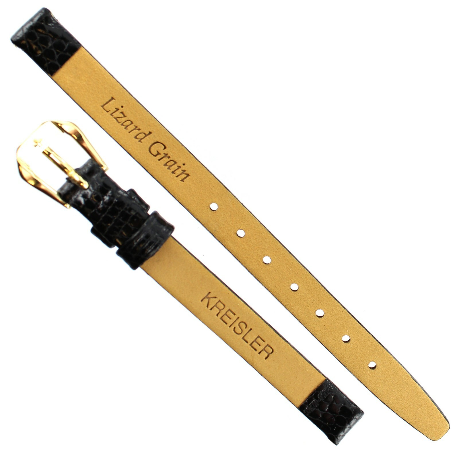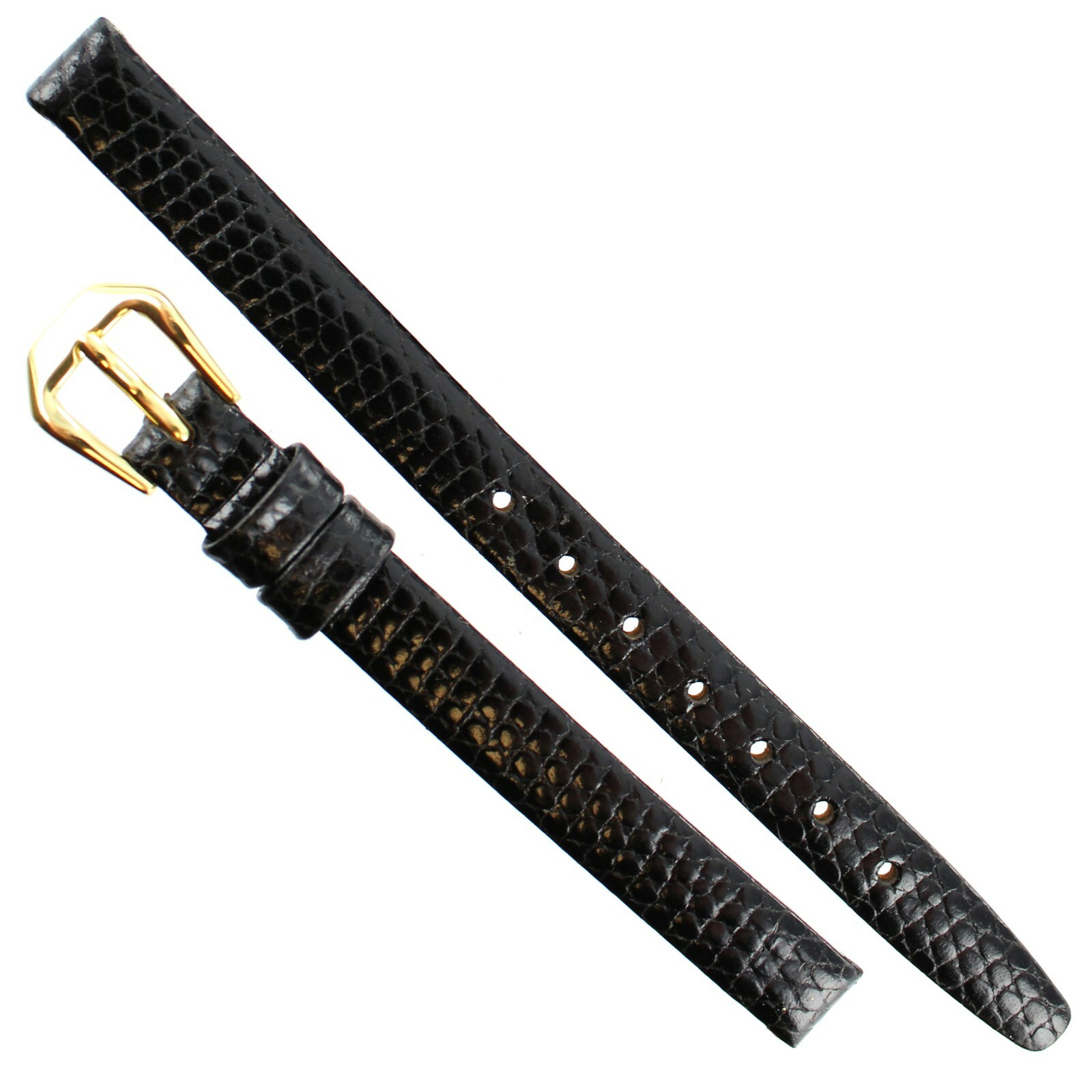 10mm Kreisler Black Lizard Grain Genuine Leather Ladies Watch Band Long BOGO