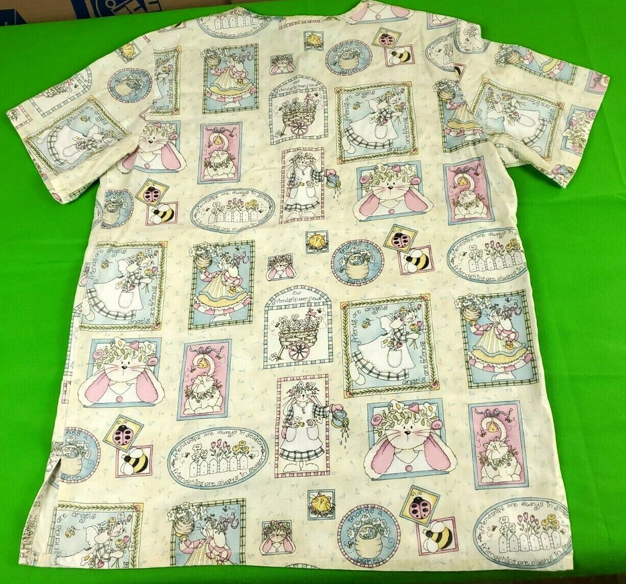 Cherokee white friendship angels print unisex men's women's scrub top size s