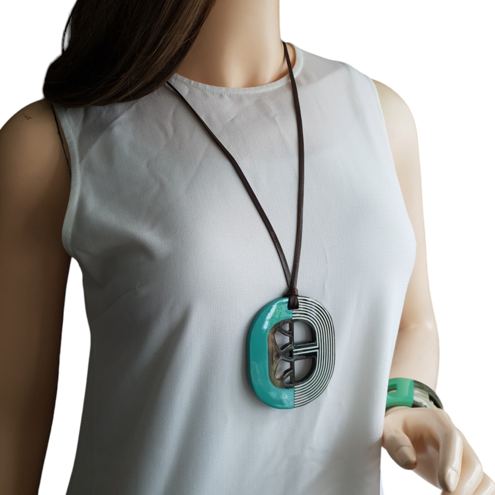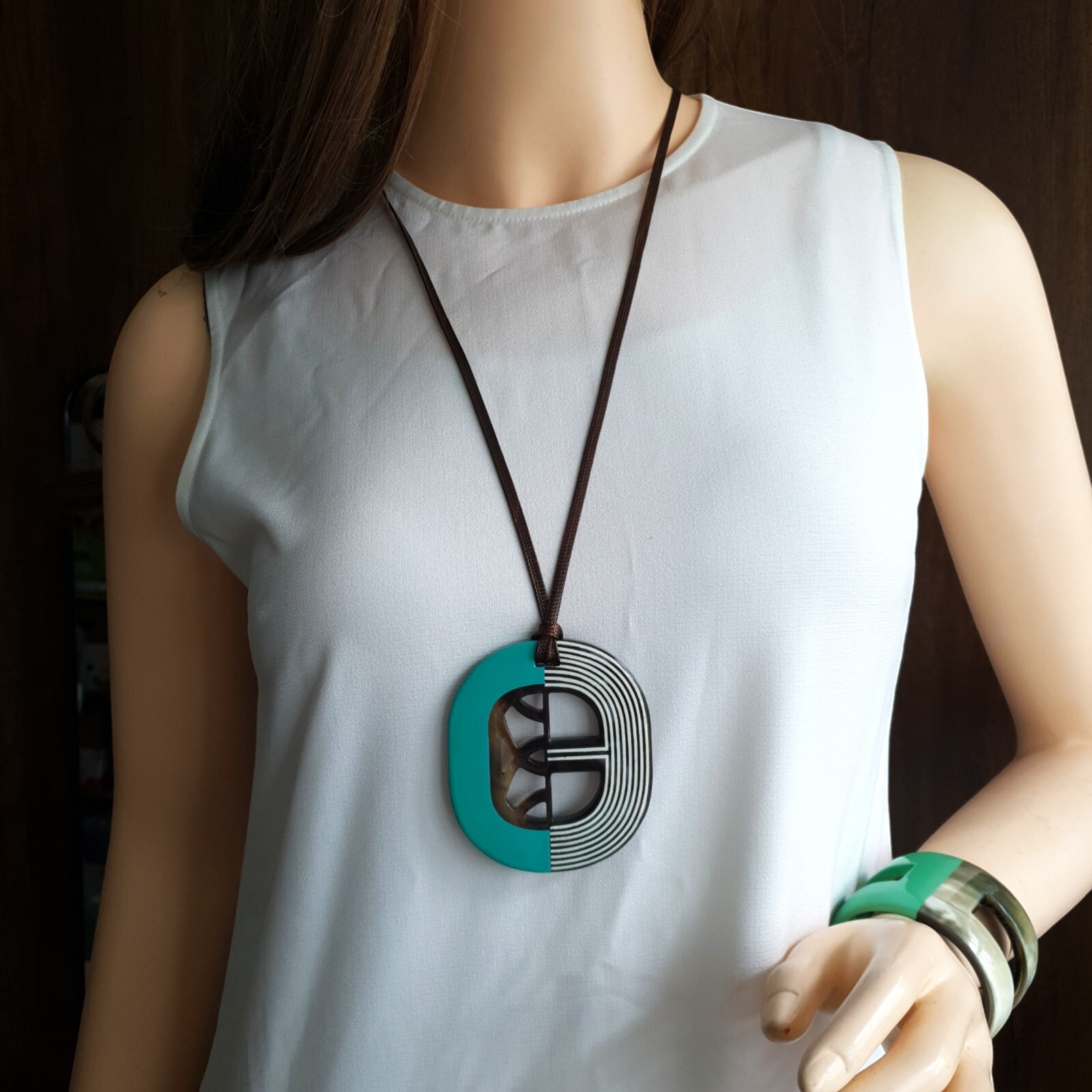 как выглядит Buffalo Horn Lacquer Pendant Necklace, Vintage Jewelry, Unique Nice Gift фото