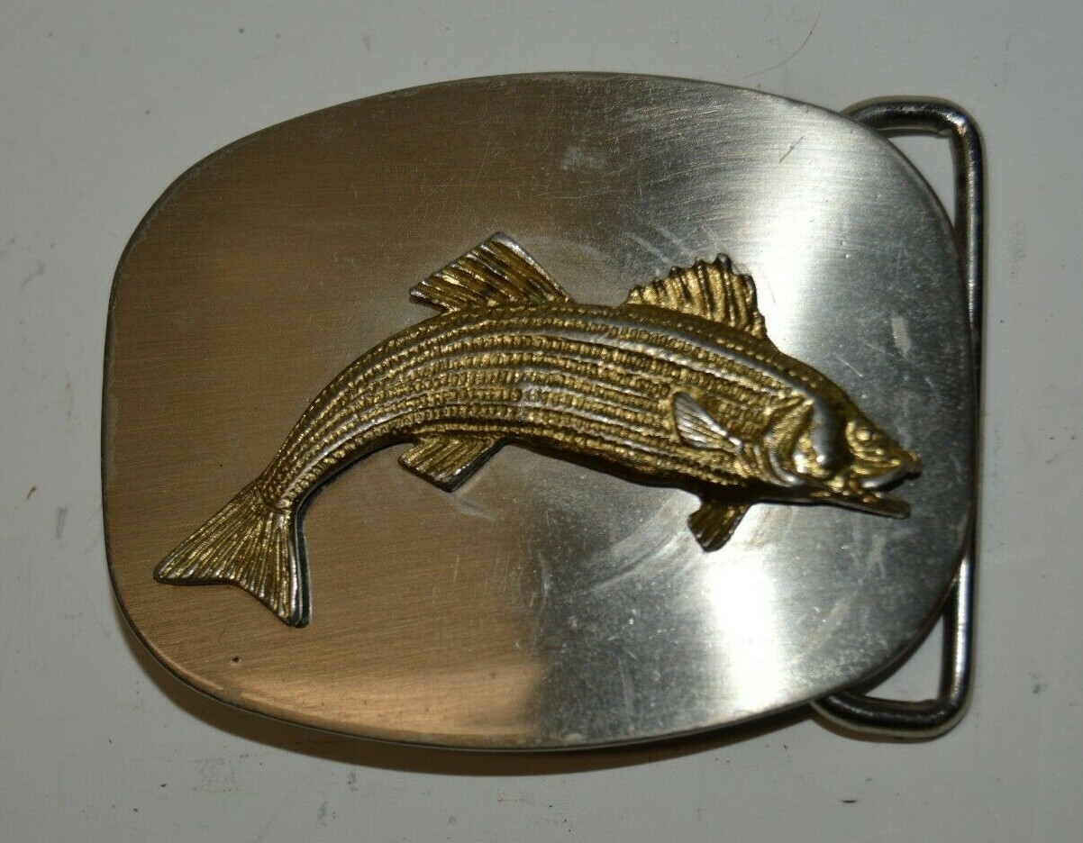 Vintage 1970s BASS Fishing Hunter Worn 3D Silver Gold Chrome Belt Buckle USA
