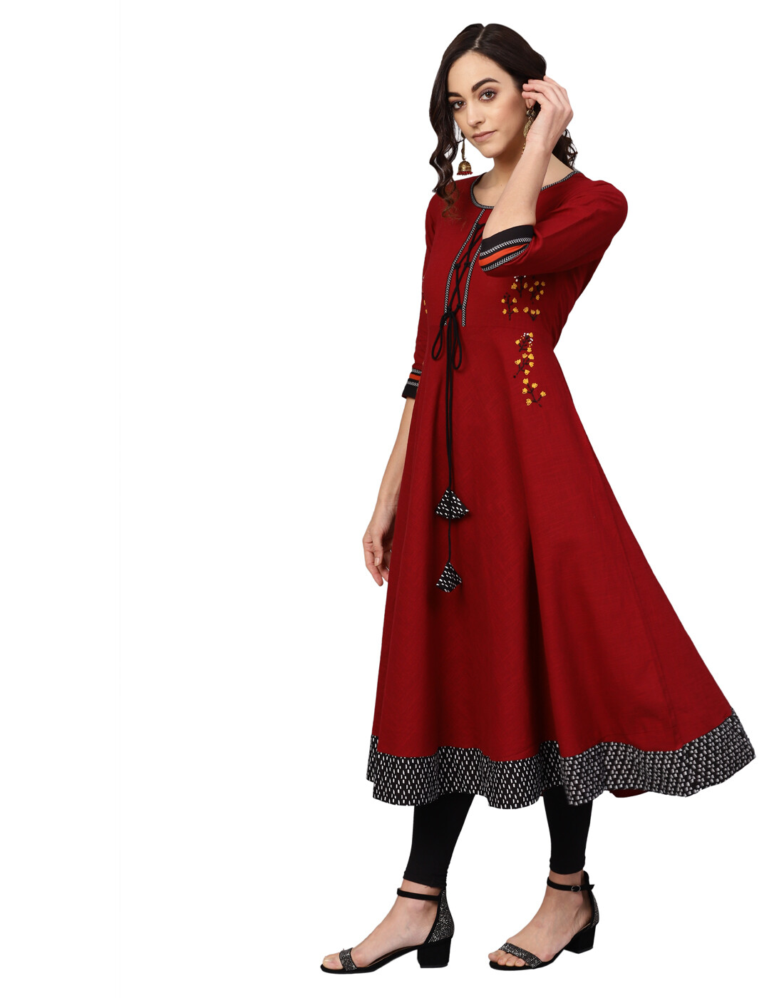 Indian Women's Traditional Embroidered Anarkali Kurta With Tassell Maroon