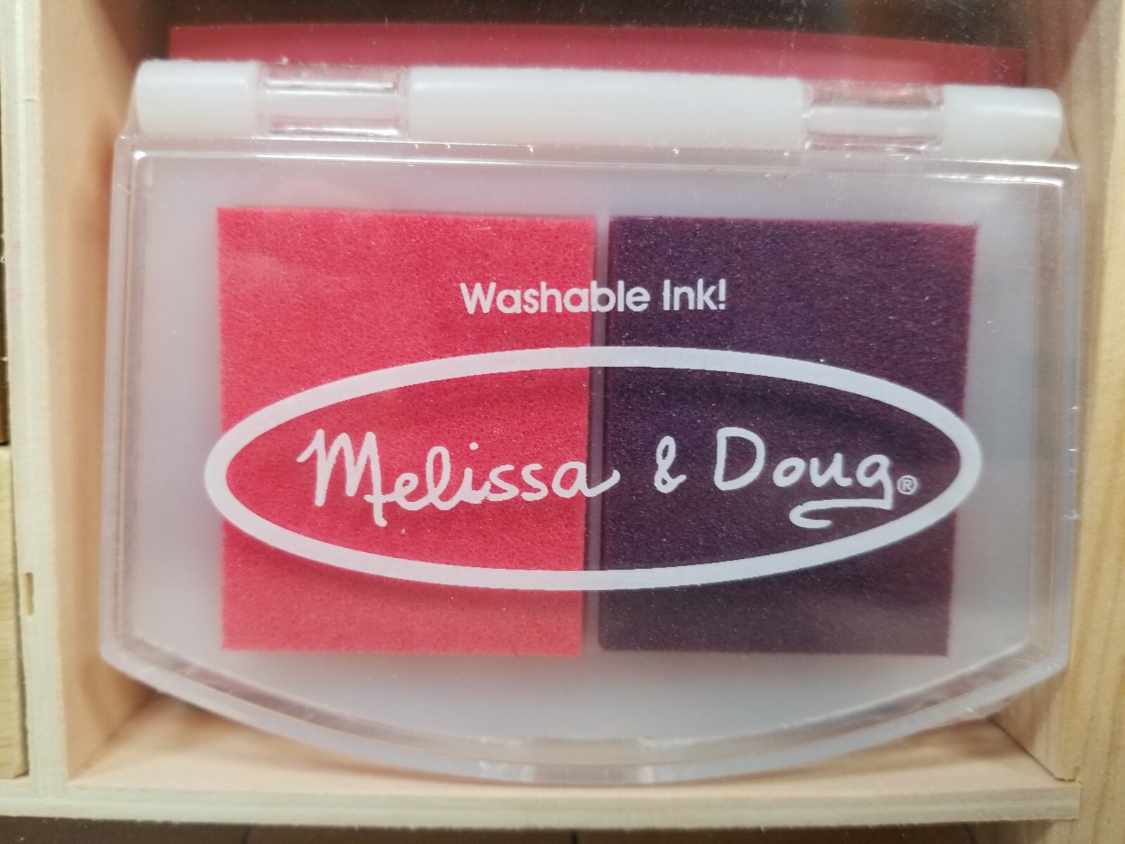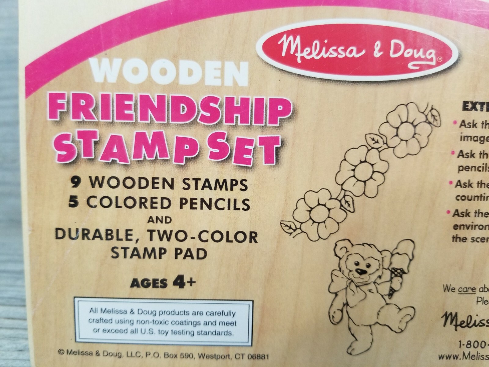Melissa Doug Wooden Friendship Stamp Set w/ 2 Color Stamp Pad 9 Stamps Pencils