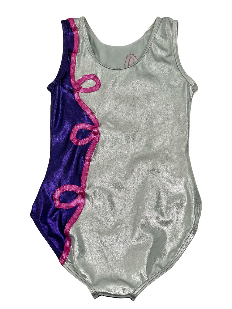 NWOT Balera Gymnastics Leotard Purple, Metallic Silver Acro Girls Med Size 10-12