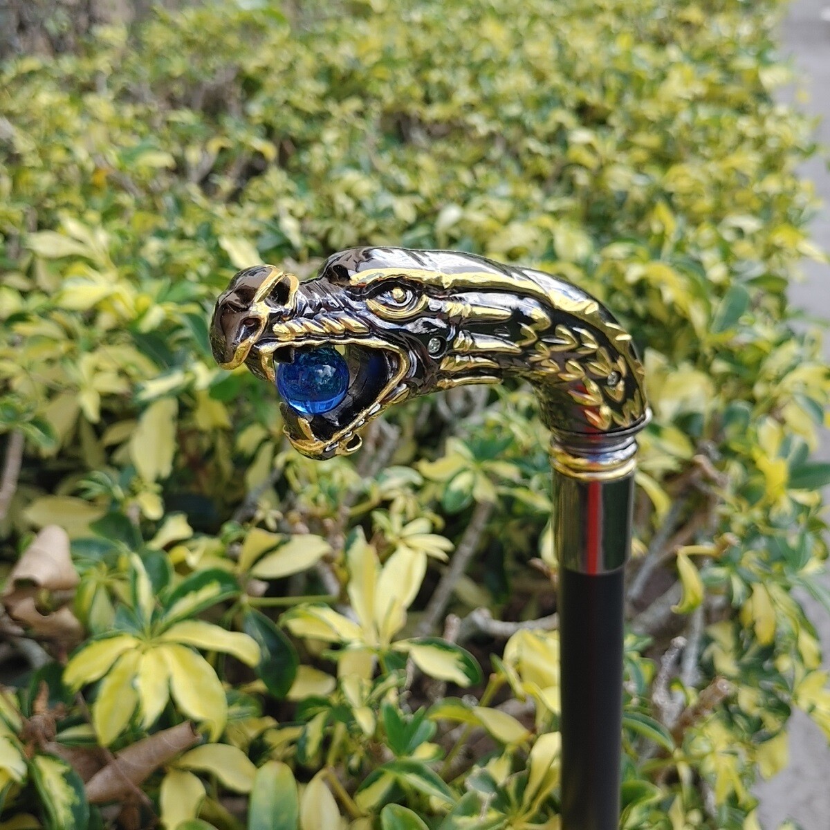 как выглядит Medieval Dragon Head Chrome Handle Walking Stick with Metal Shaft фото