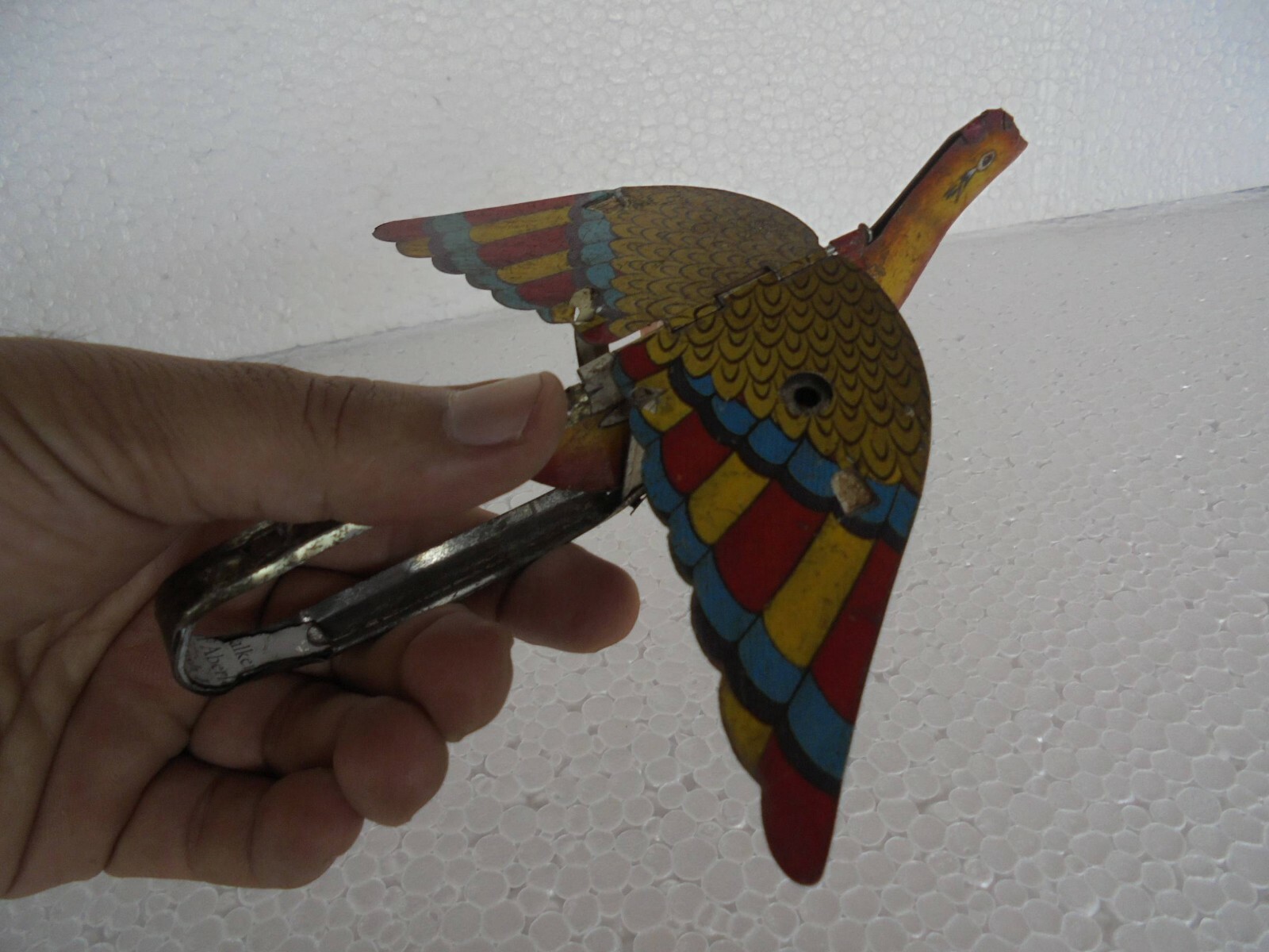 как выглядит Vintage MT Trademark Colorful Litho Mechanical Bird Tin Toy, Japan фото