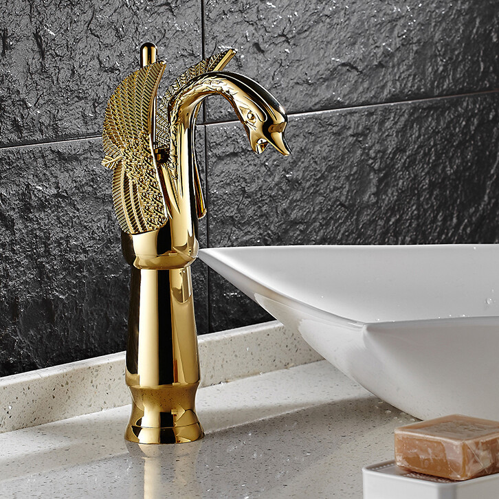 Gold Swan Single Handle Single Hole Bathroom Sink Faucet Deck Mount Mixer Tap