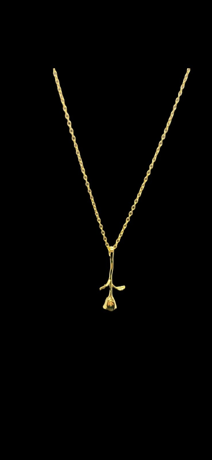 HIGH QUALITY Gold plated Dainty Rose pendant necklace 925 silver