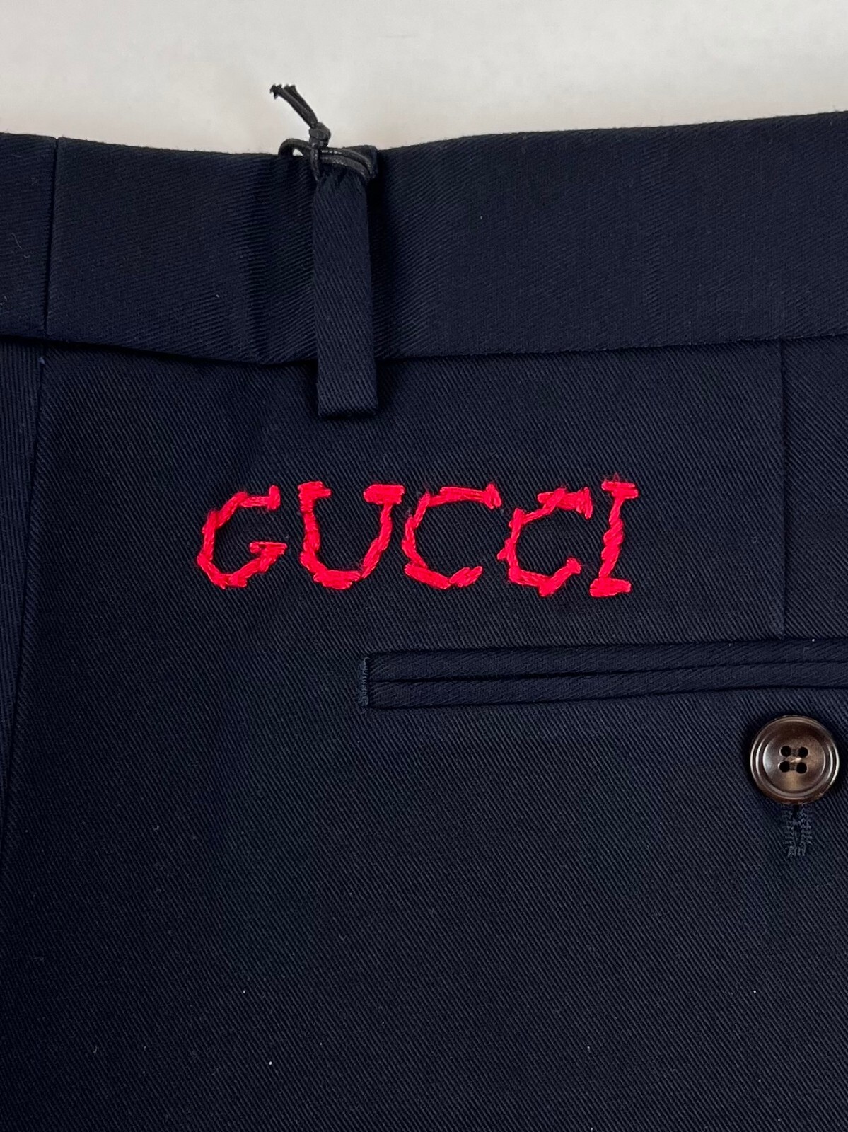 как выглядит Gucci Mens Dark Blue Military Cotton Drill Pants w/Embroidered Logo 519546 4265 фото