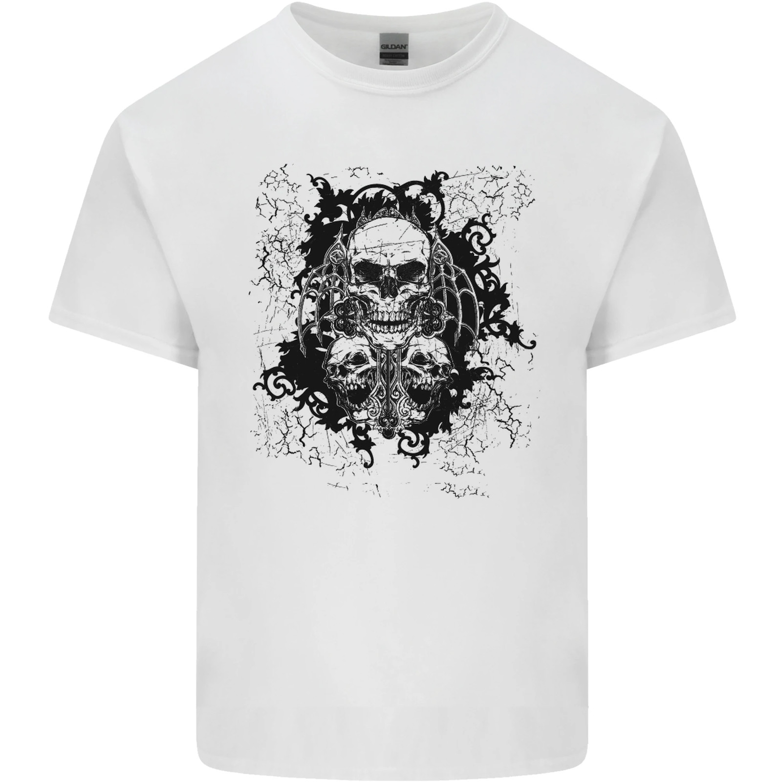 Three Skulls Demon Biker Gothic Tattoo Mens Cotton T-Shirt Tee Top