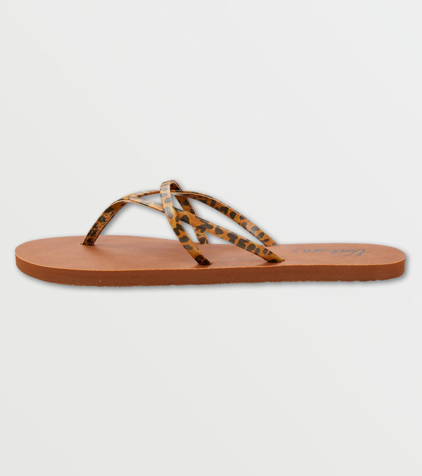 NWT WOMENS VOLCOM ALL DAY LONG SANDAL 26 7 cheetah synthetic leather slip-on