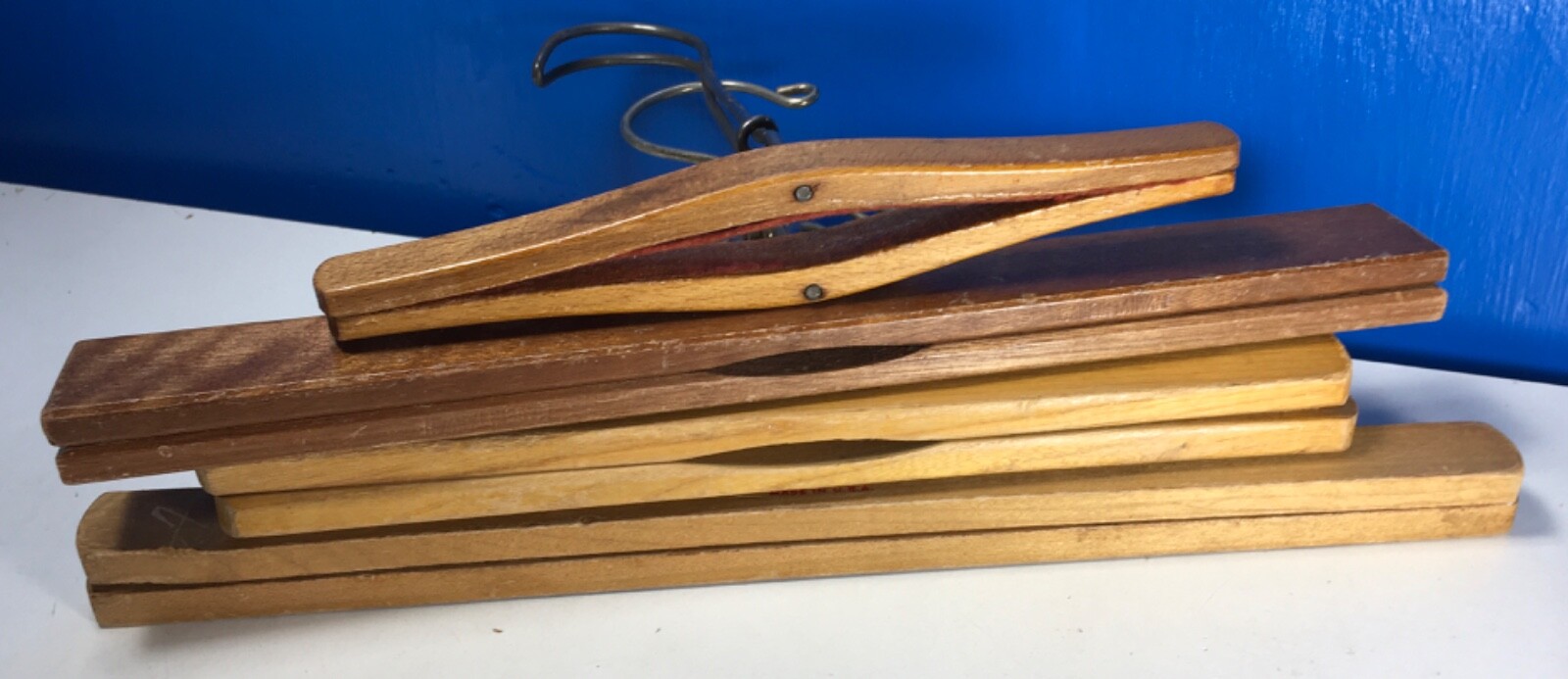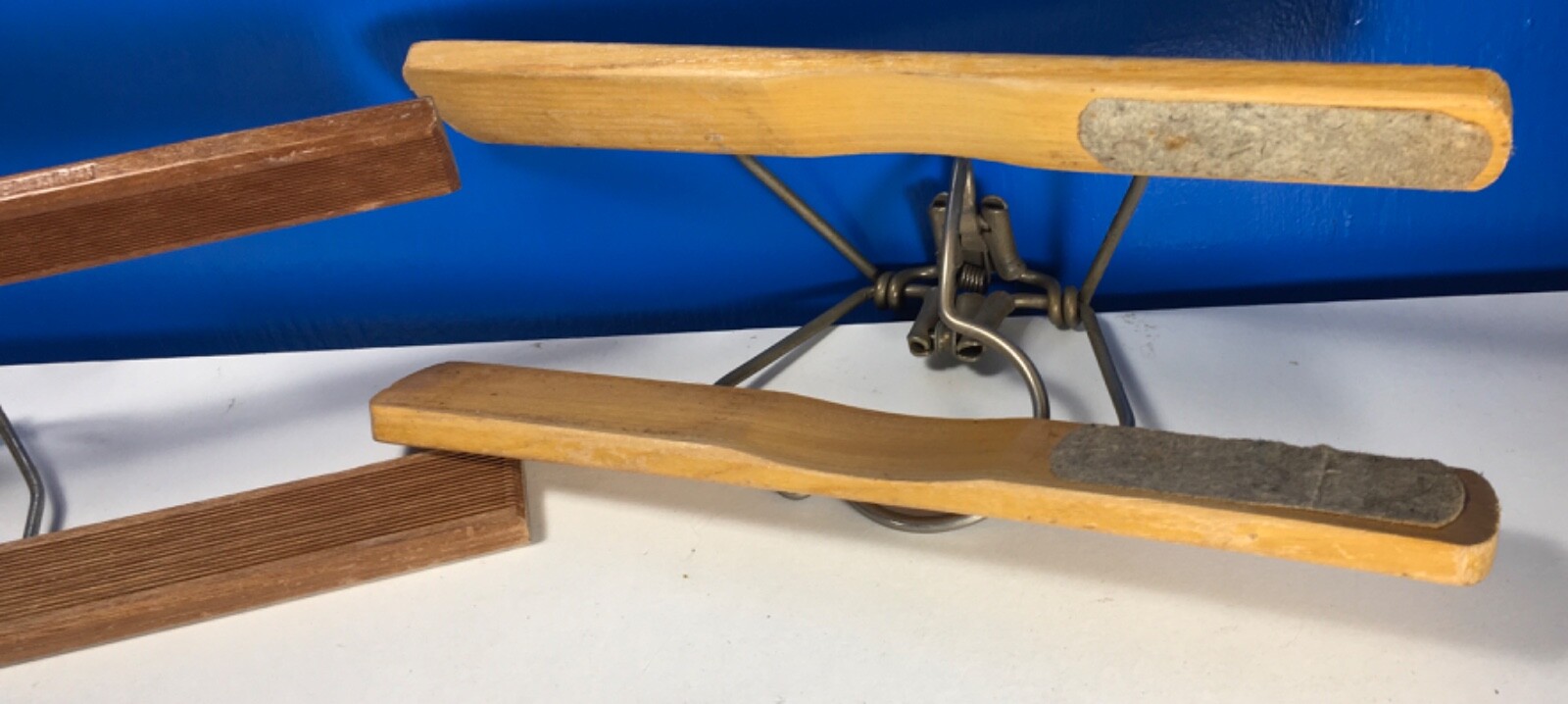 4 different ANTIQUE WOOD WIRE Clamp CLOTHES HANGERS Setwell Special