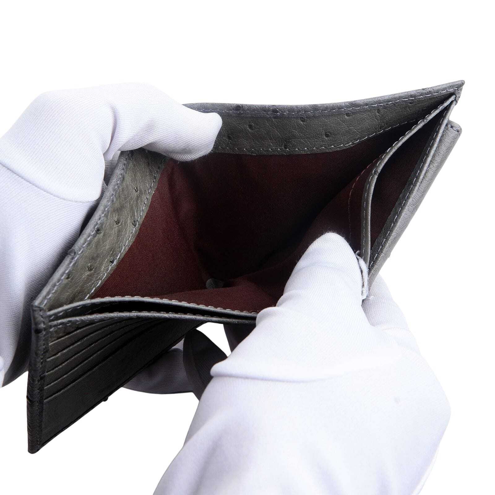 Grey Genuine Ostrich Skin Leather Wallet Exotic Bifold Men's Elegant Luxury Real