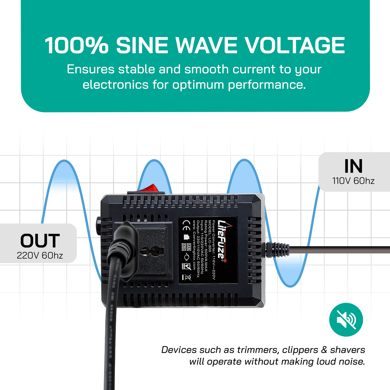 как выглядит LiteFuze LC-500UK 500W Travel Voltage Converter Transformer - Step Up/Down - UK фото
