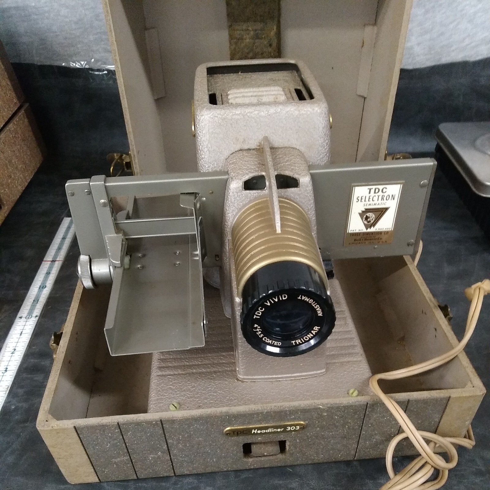 Gray TDC Headliner 303 Selectron Semimatic Slide Projector for parts only