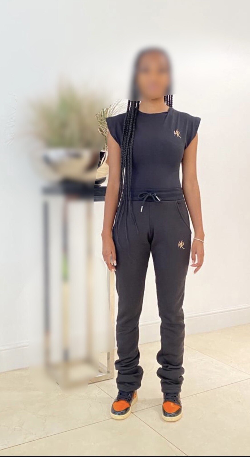 как выглядит Womens tracksuit set with short sleeve body stacked joggers - size S фото