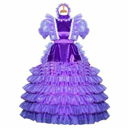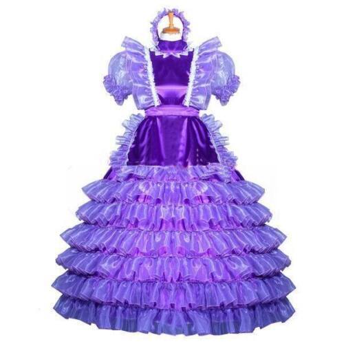 Sissy Maid Purple Satin Organza Lockable Dress Cosplay Costume Tailor-made