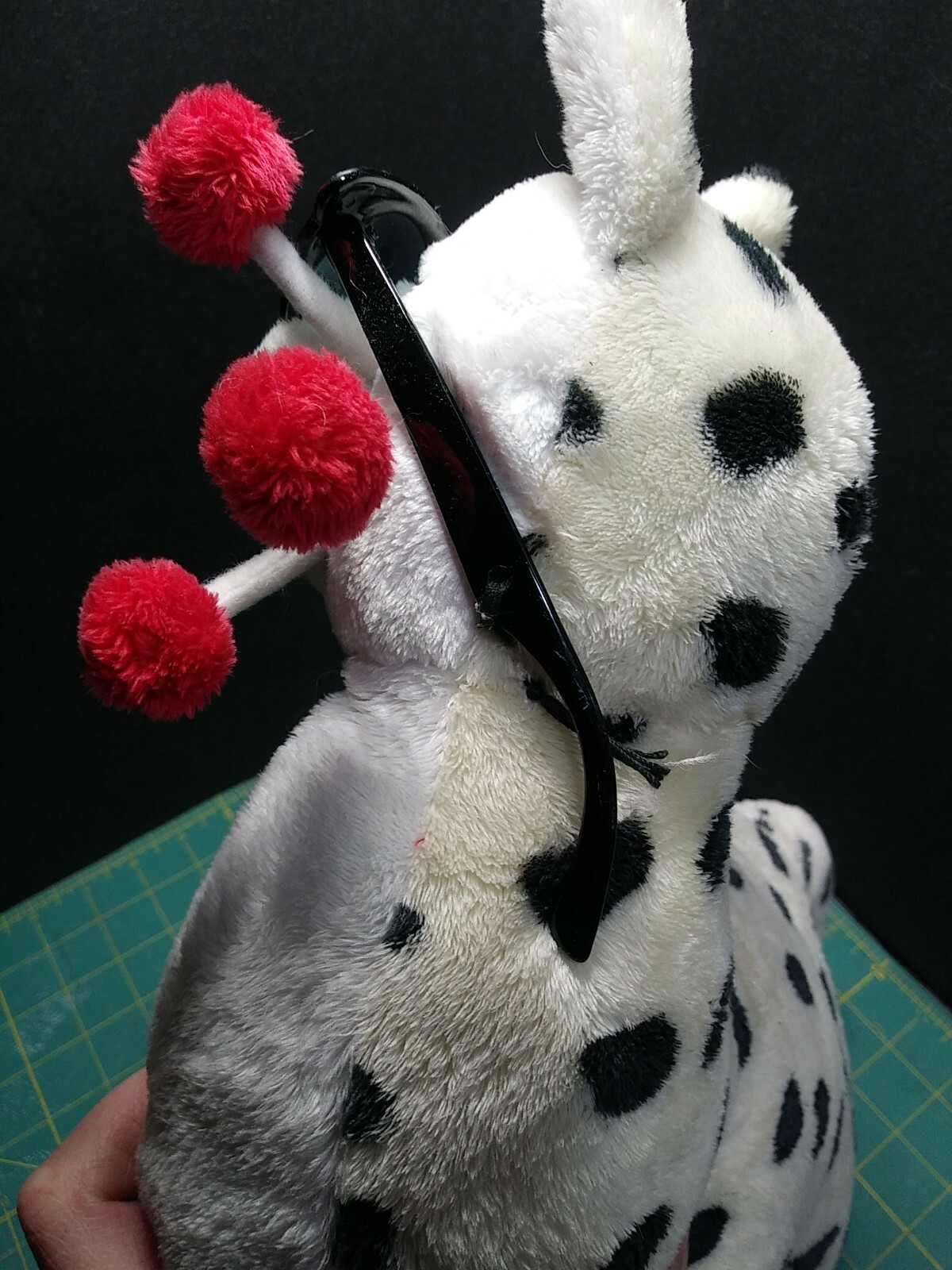 Whimsyclay Plush Cat Blanca black Sunglasses Polka Dot Amy Lacombe red shoes