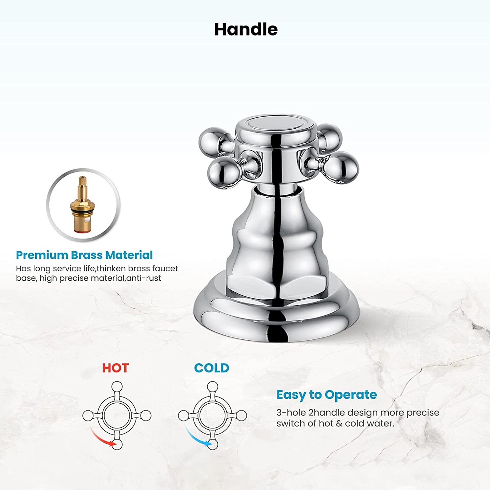 Chrome Bathroom Sink Faucet 2Handle 3Holes Widespread Basin Mixer Tap with Drain