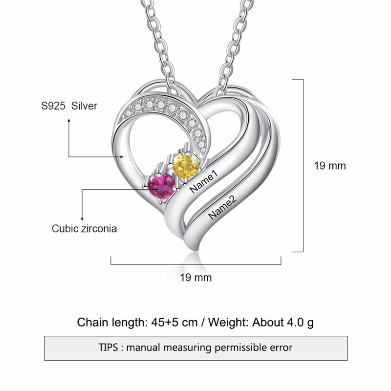 Personalization Instructions: Enter like this, please- Birthstone month 1- Birthstone month 2- Name 1- Name 2-