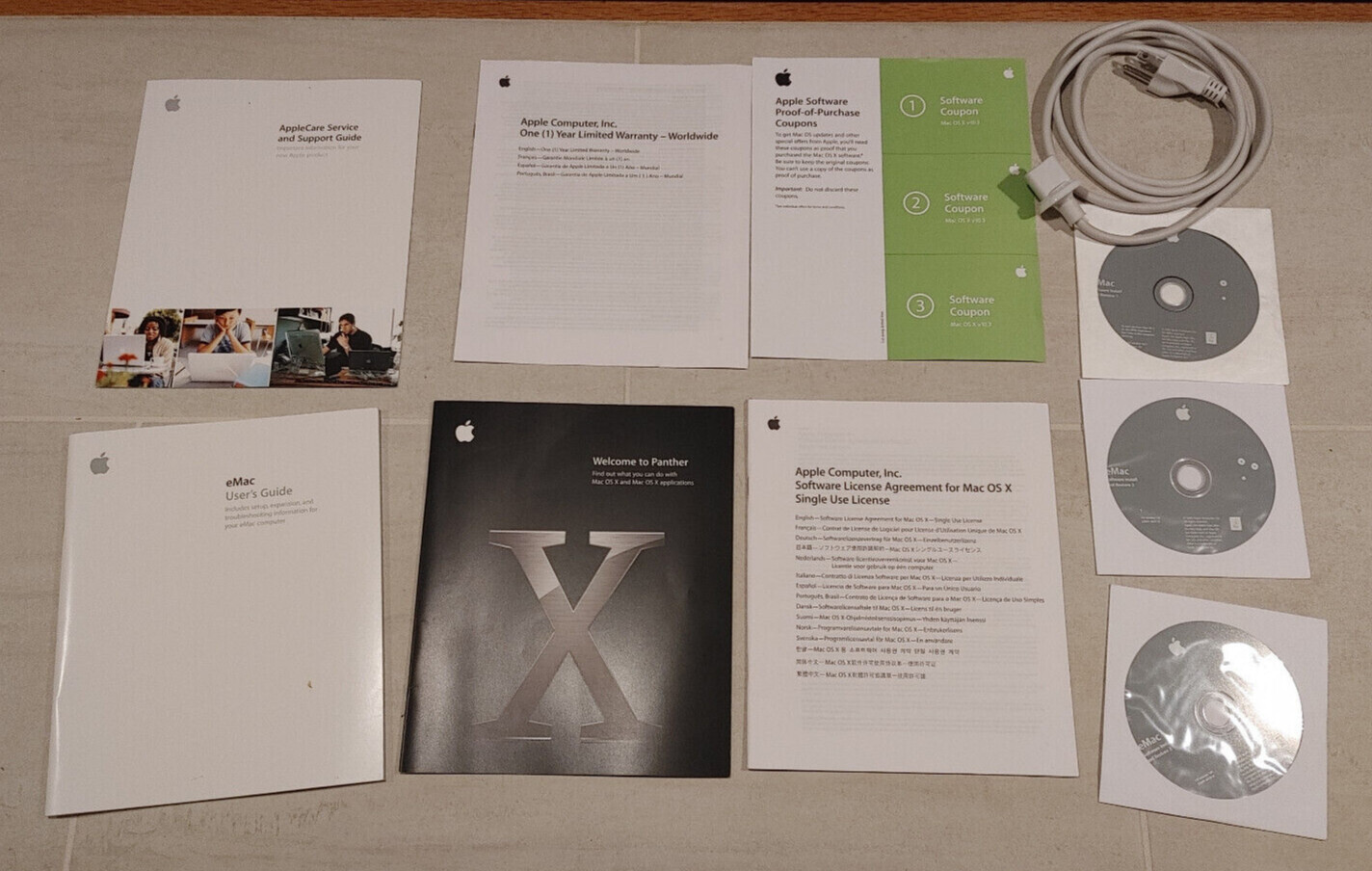 Vintage Apple eMac G4,1GHz,256MB ram,80GB hd PARTS ONLY w/ manuals, CD s Cord