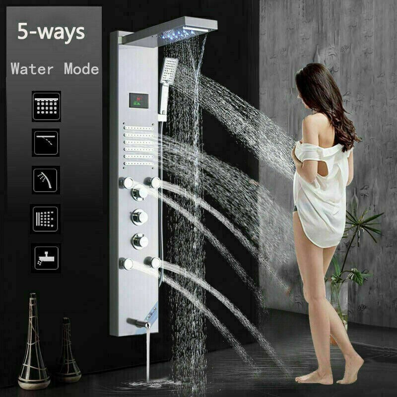 как выглядит ELLO ALLO LED Shower Panel Tower System Rainfall Waterfall Massage Shower Faucet фото