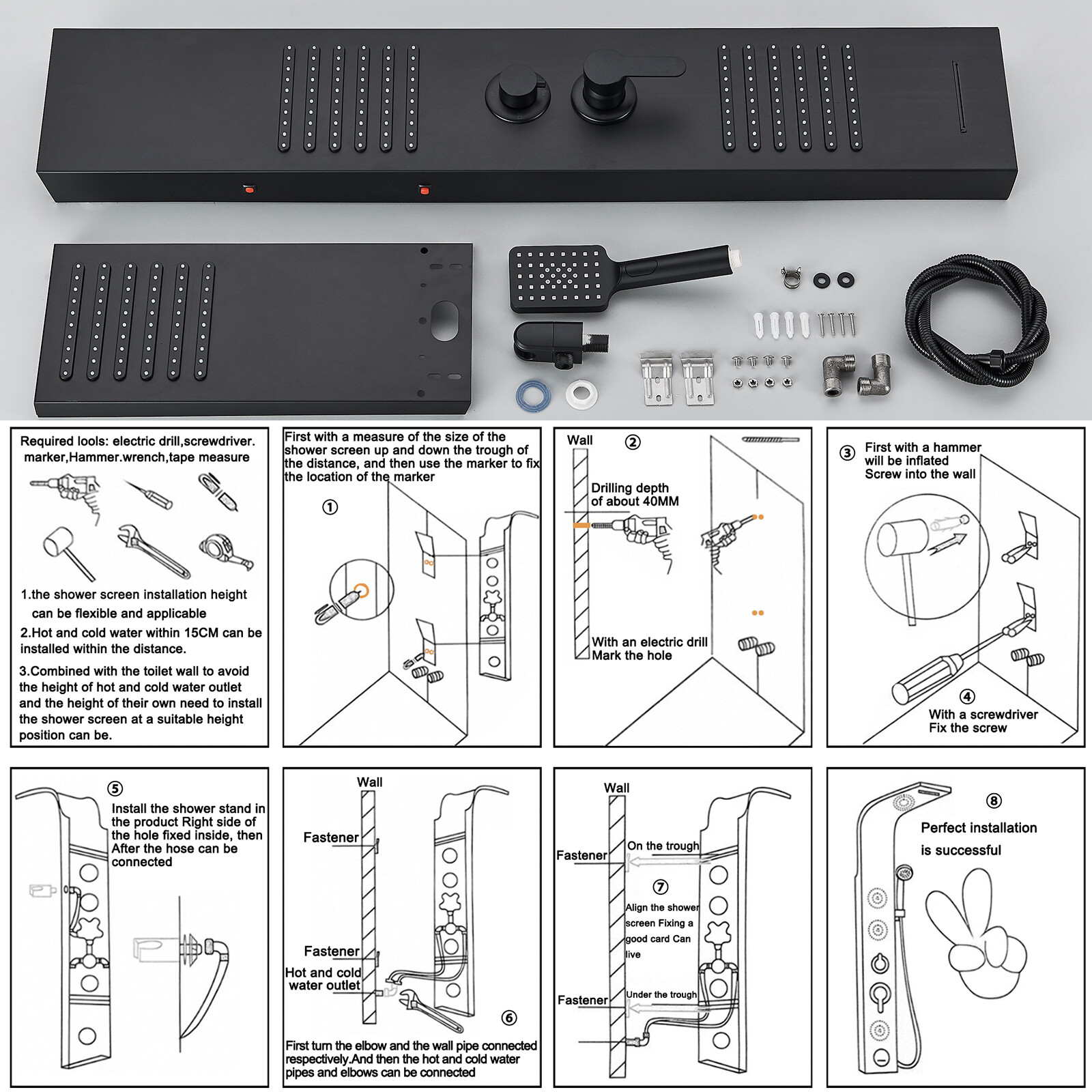 Shower Head Diameter: 20x47 cm