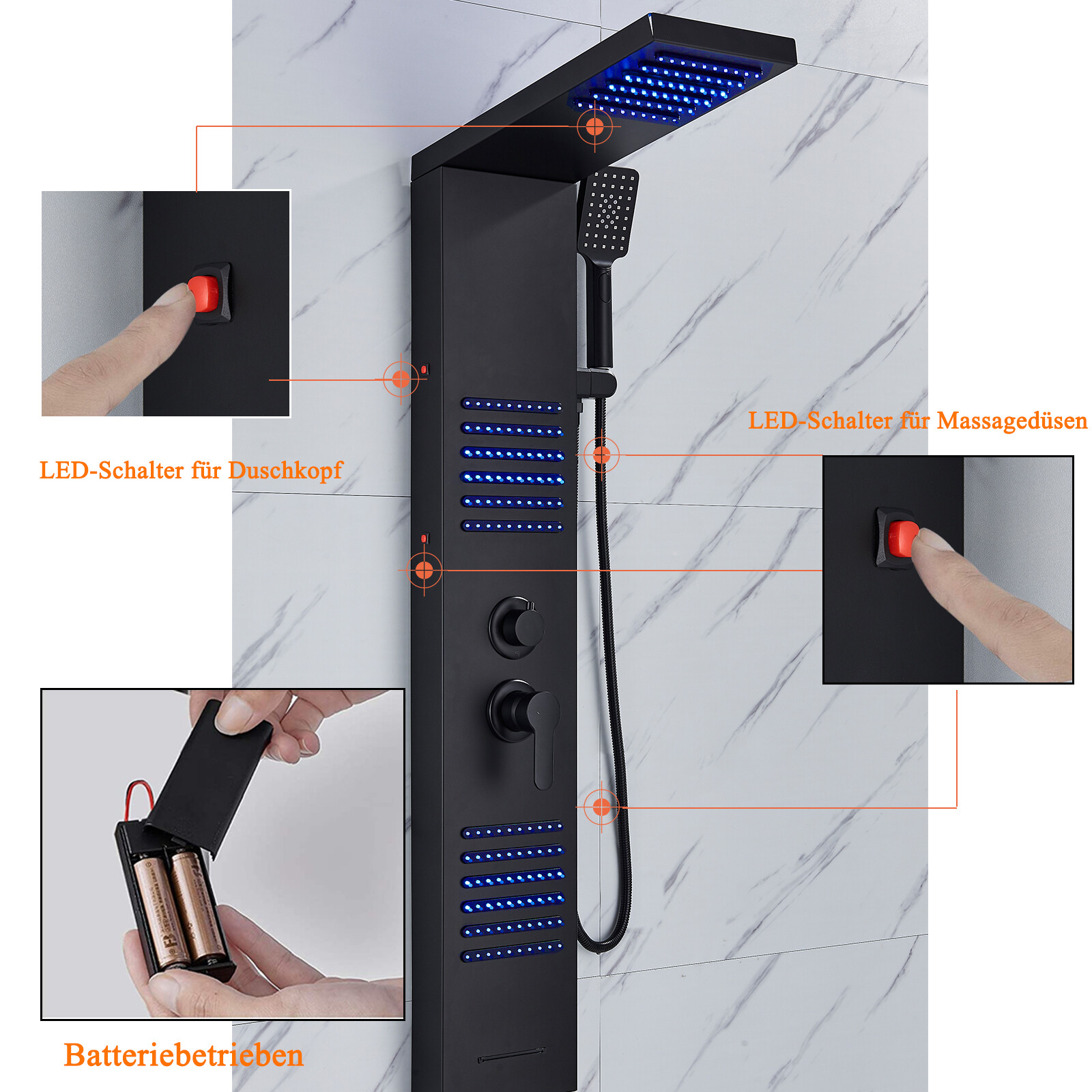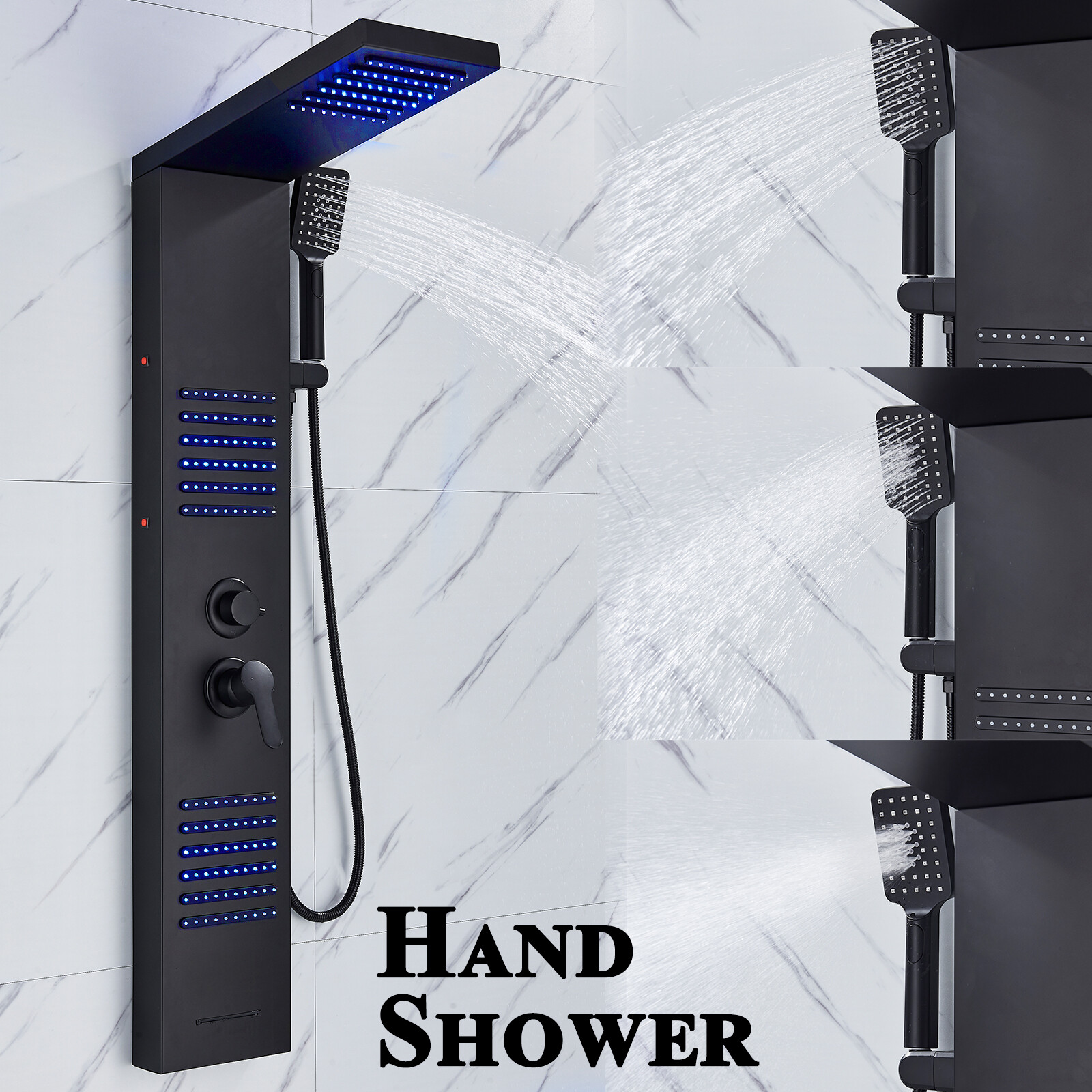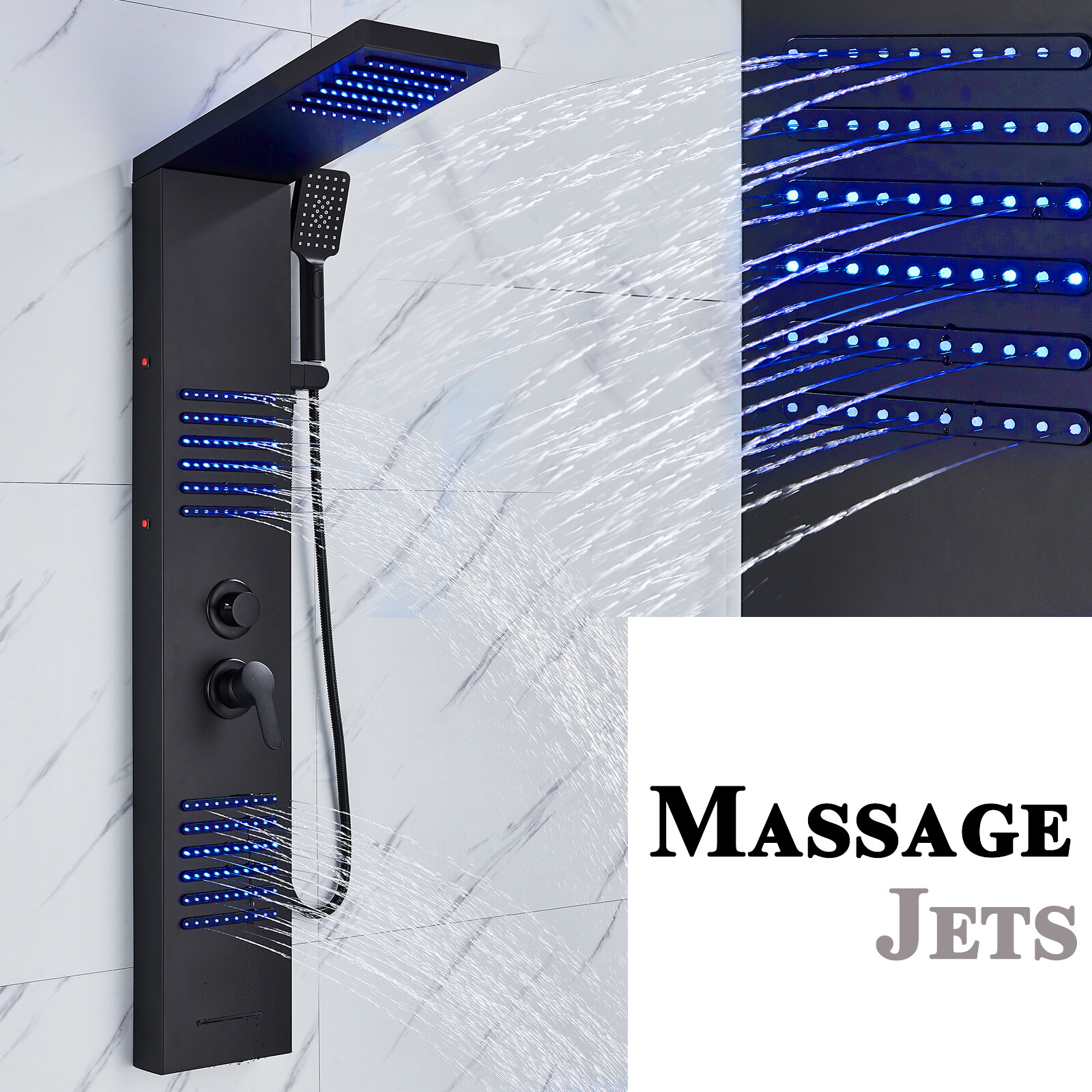 LED Rainfall Shower Panel Tower Massage Shower Faucet System Set Stainless Steel