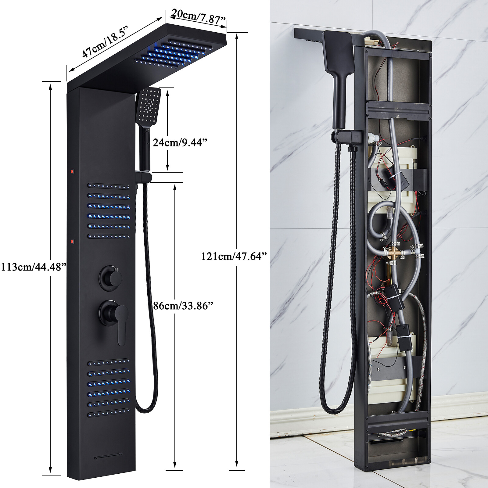как выглядит LED Rainfall Shower Panel Tower Massage Shower Faucet System Set Stainless Steel фото