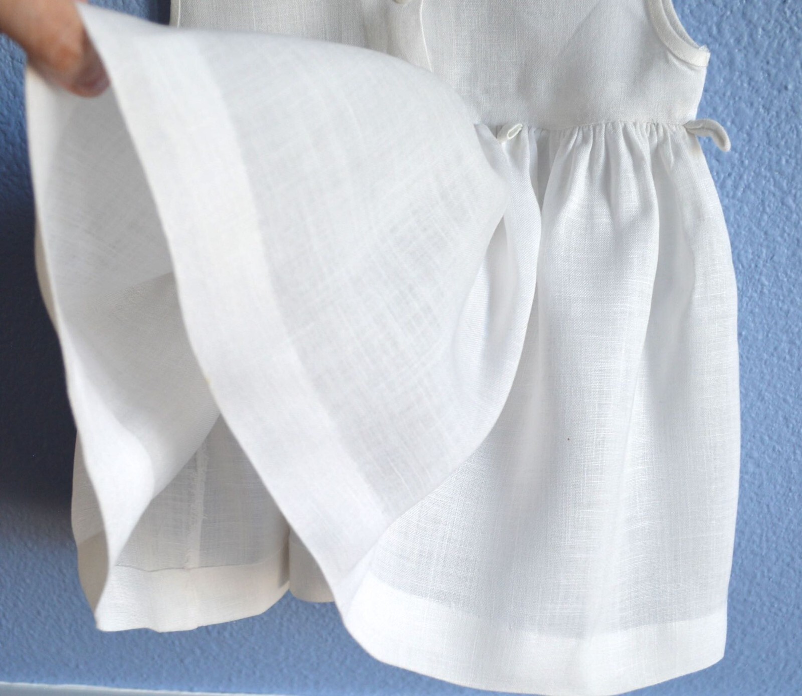 как выглядит VINTAGE 1950s LITTLE GIRL CHILDS DRESS WHITE CRISP STIFF LINEN FULL SKIRT фото