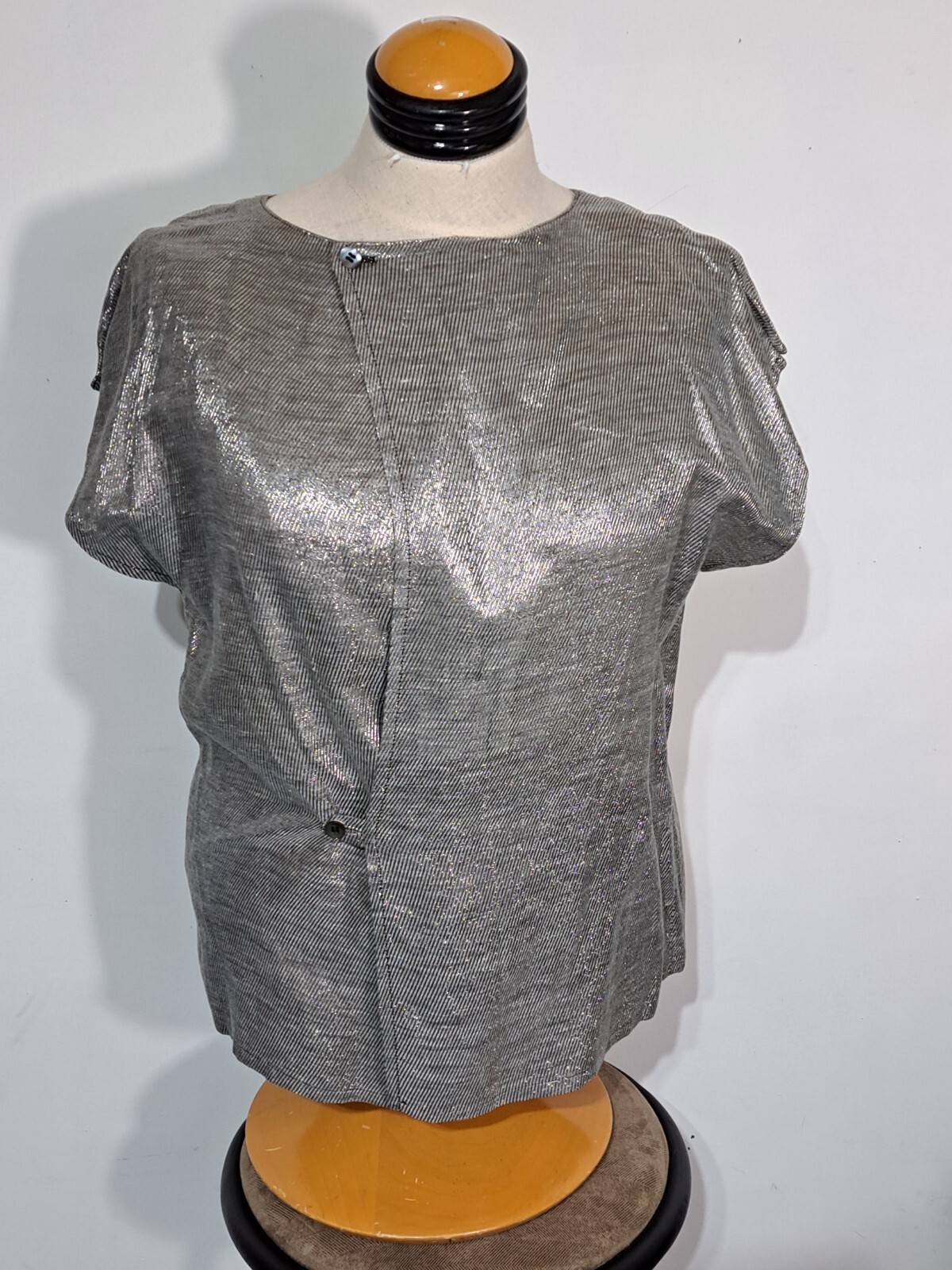 Vintage 1980s Designer 3-Piece Pant Suit Metallic Top Oversized Jacket Sz 40