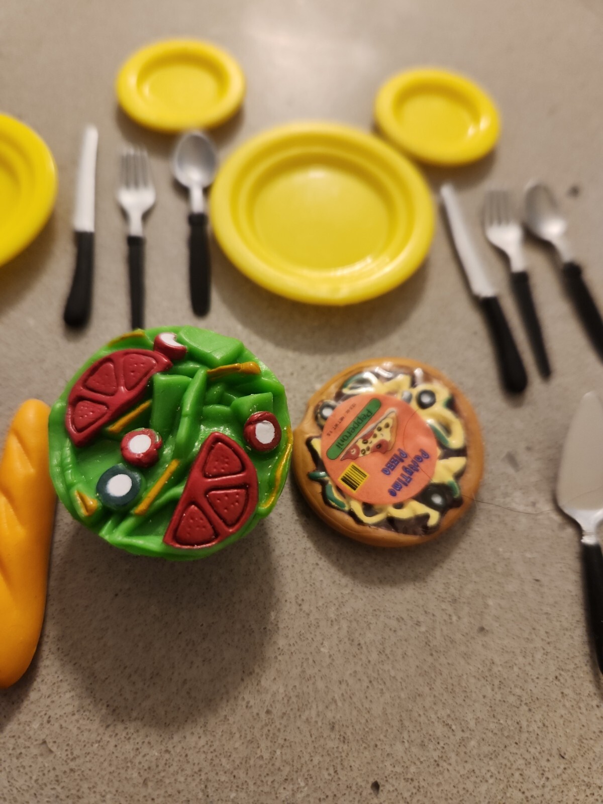 TYCO Kitchen Littles SALAD Frozen Pizza Barbie doll size Italian set food lot
