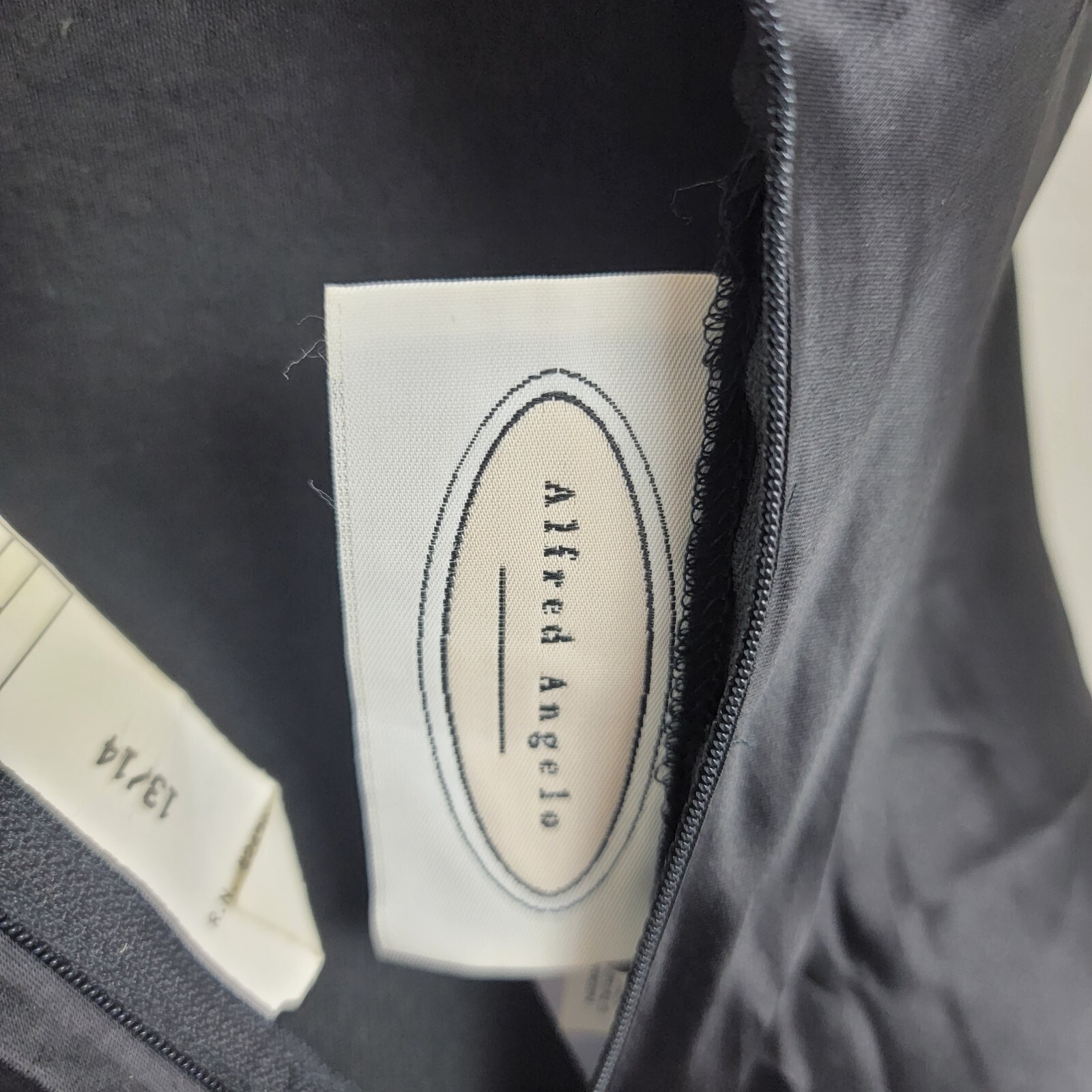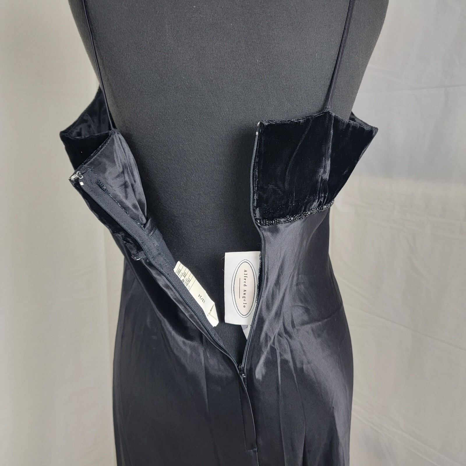 Alfred Angelo Long black formal dress Sz 13 / 14 Juniors JRS satin velvet ball