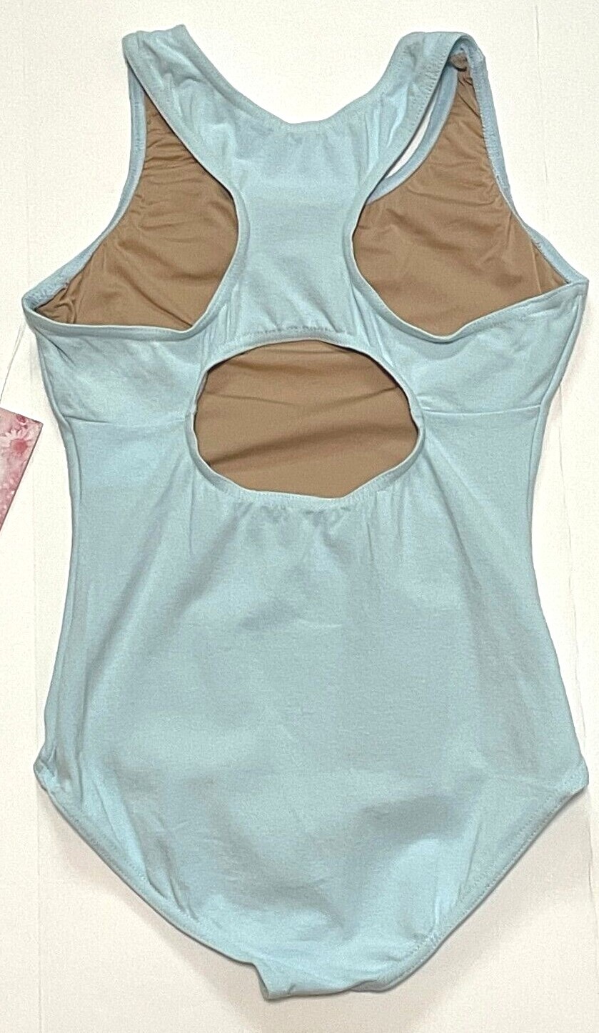 Natalie Theatrical Leotard Bodysuit Keyhole Cut-out in Back Light Blue New Girl