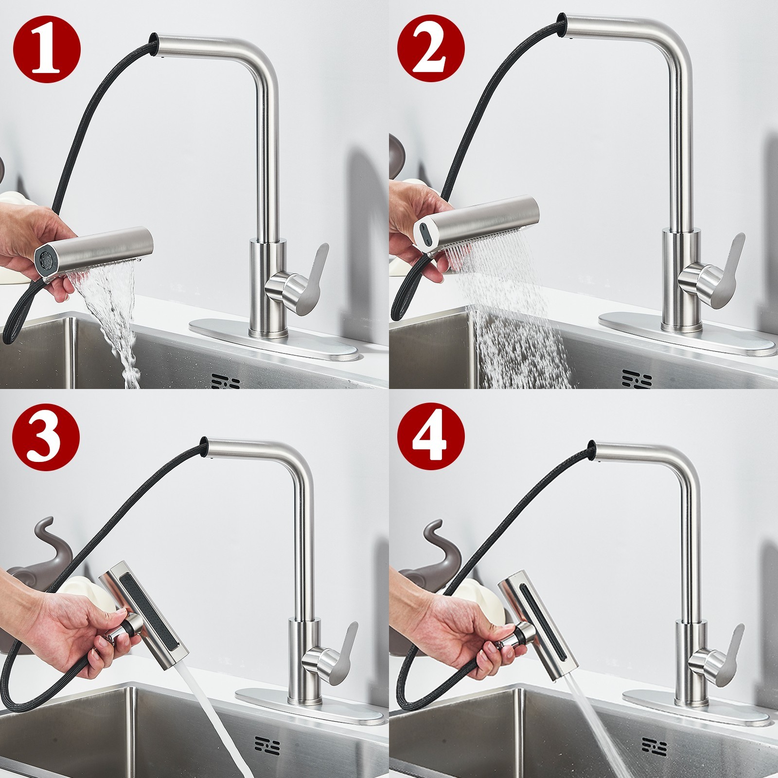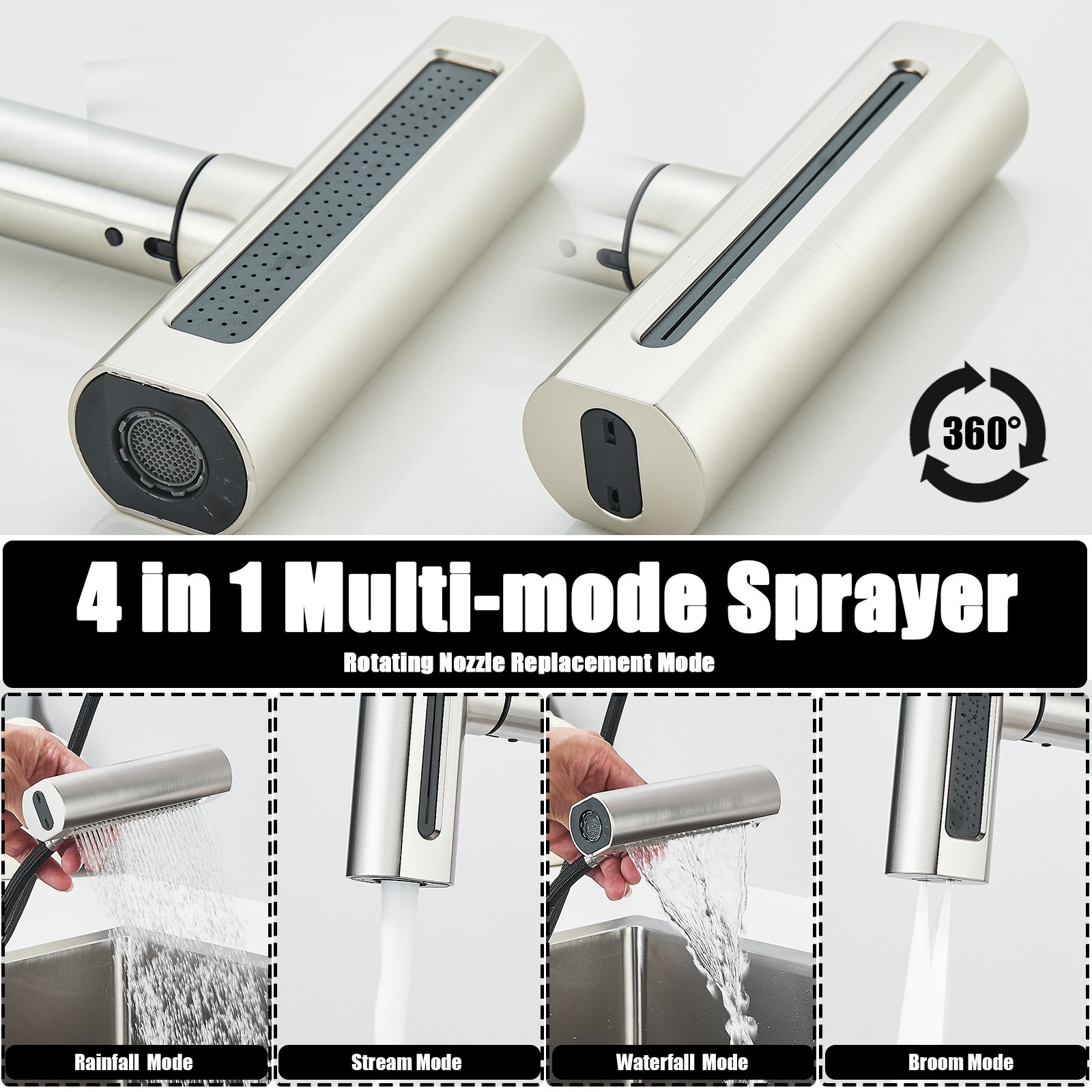 Brushed Nickel Kitchen Sink Faucet Pull Down Sprayer Single Handle Swivel Mixer